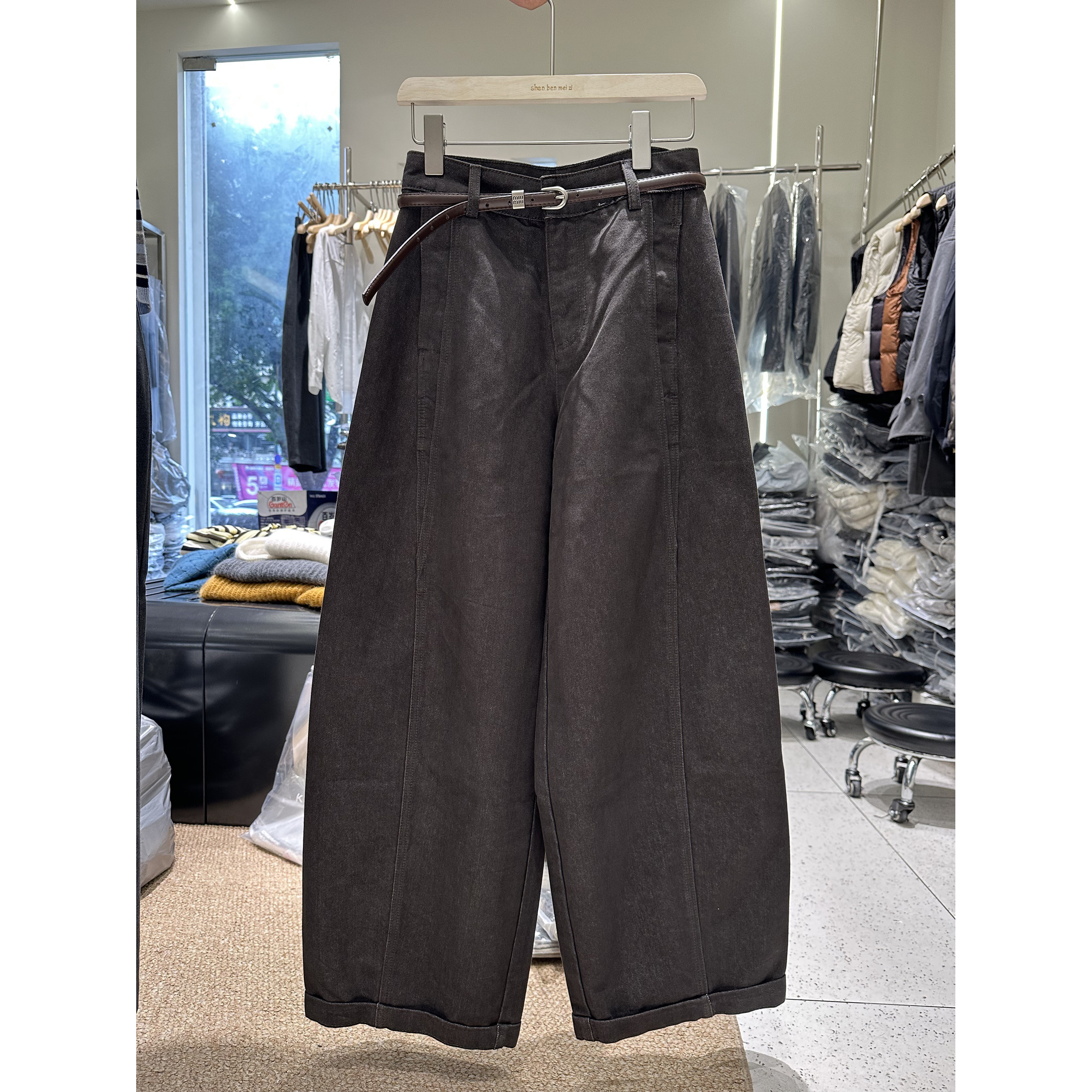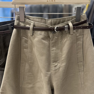 双口袋卡其色拼接卷边弯刀裤 欧货休闲宽松版 女 新款 欧洲站2025秋季