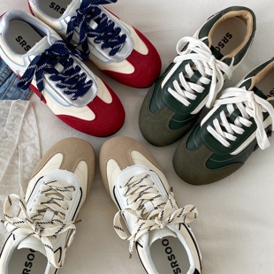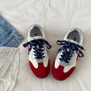 休闲运动小白鞋 春秋百搭阿甘鞋 女款 喜叔复古红色平底内增高德训鞋