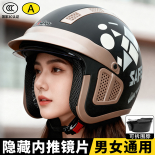通用摩托半盔 保暖安全帽四季 2025新款 3C认证电动车头盔女士秋冬季