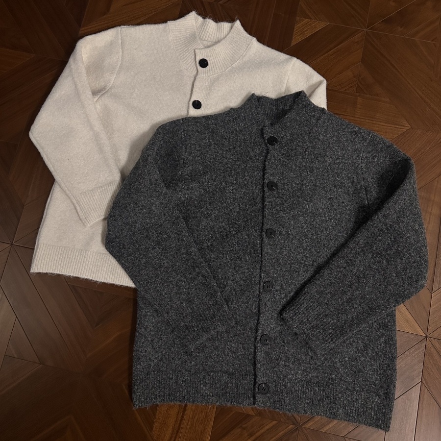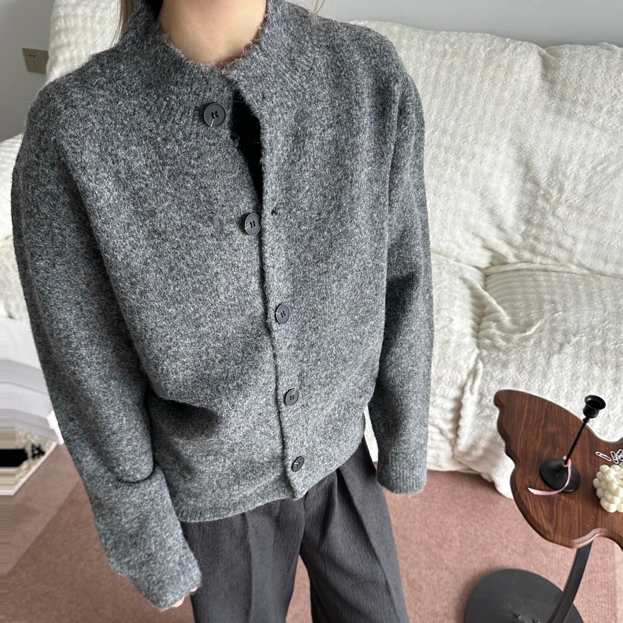 老钱风日常通勤针织衫 开衫 外套 花纱仿羊绒半高领纽扣毛衣 RTIMFD