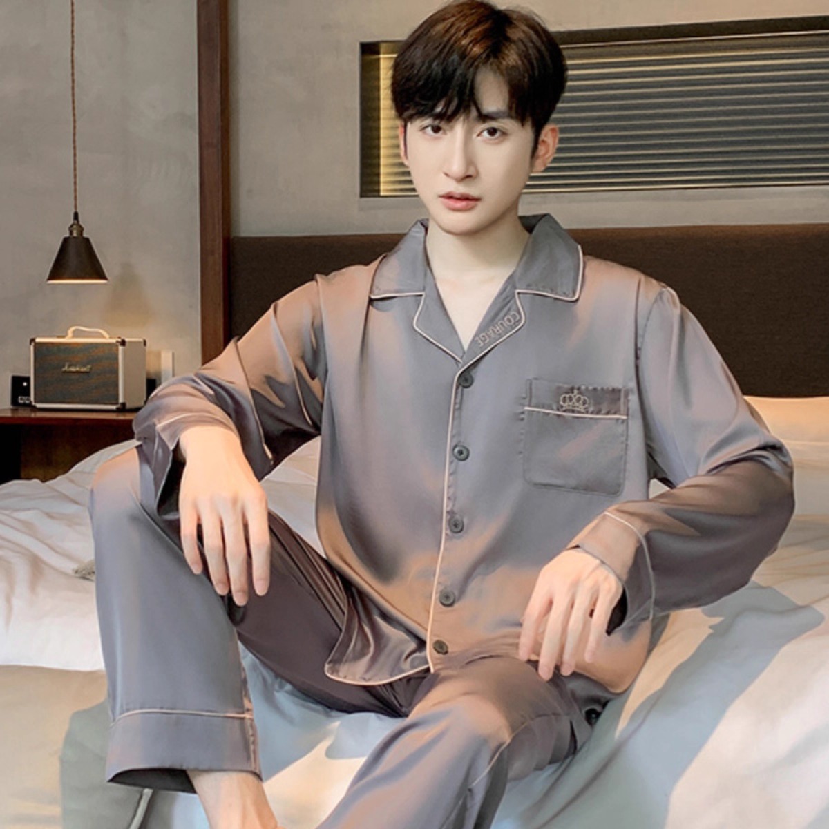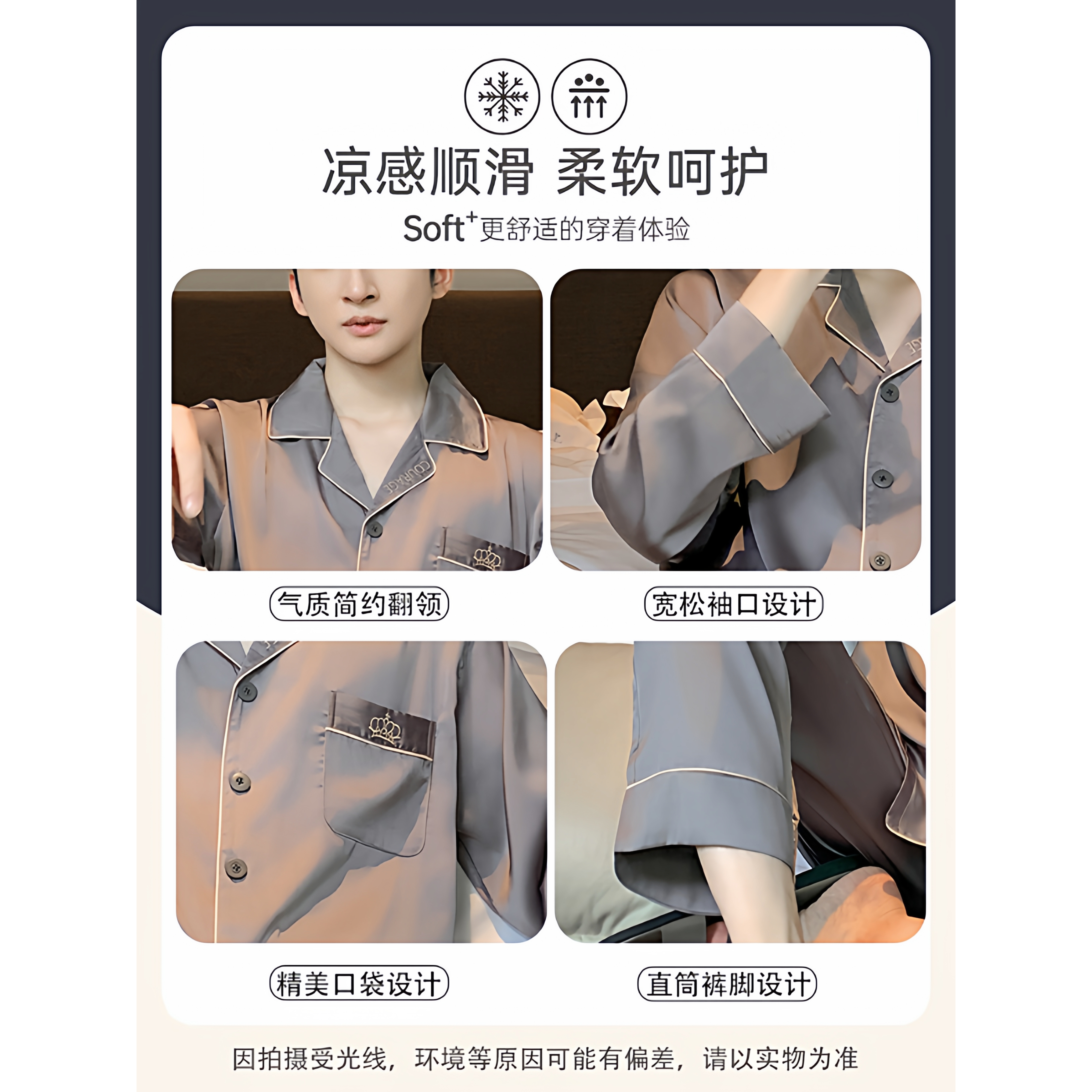 套装 维多利亚高端男士 冰丝青少年休闲家居服长袖 2025新款 睡衣男款