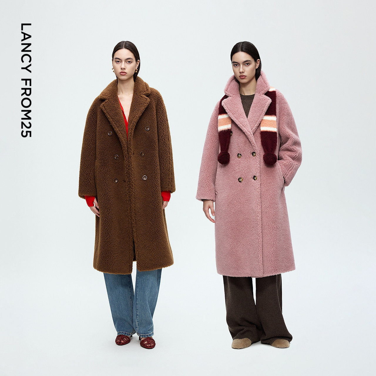 朗姿泰迪大衣气质翻领颗粒羊毛大衣百搭仿皮草外套2025年冬季 新款