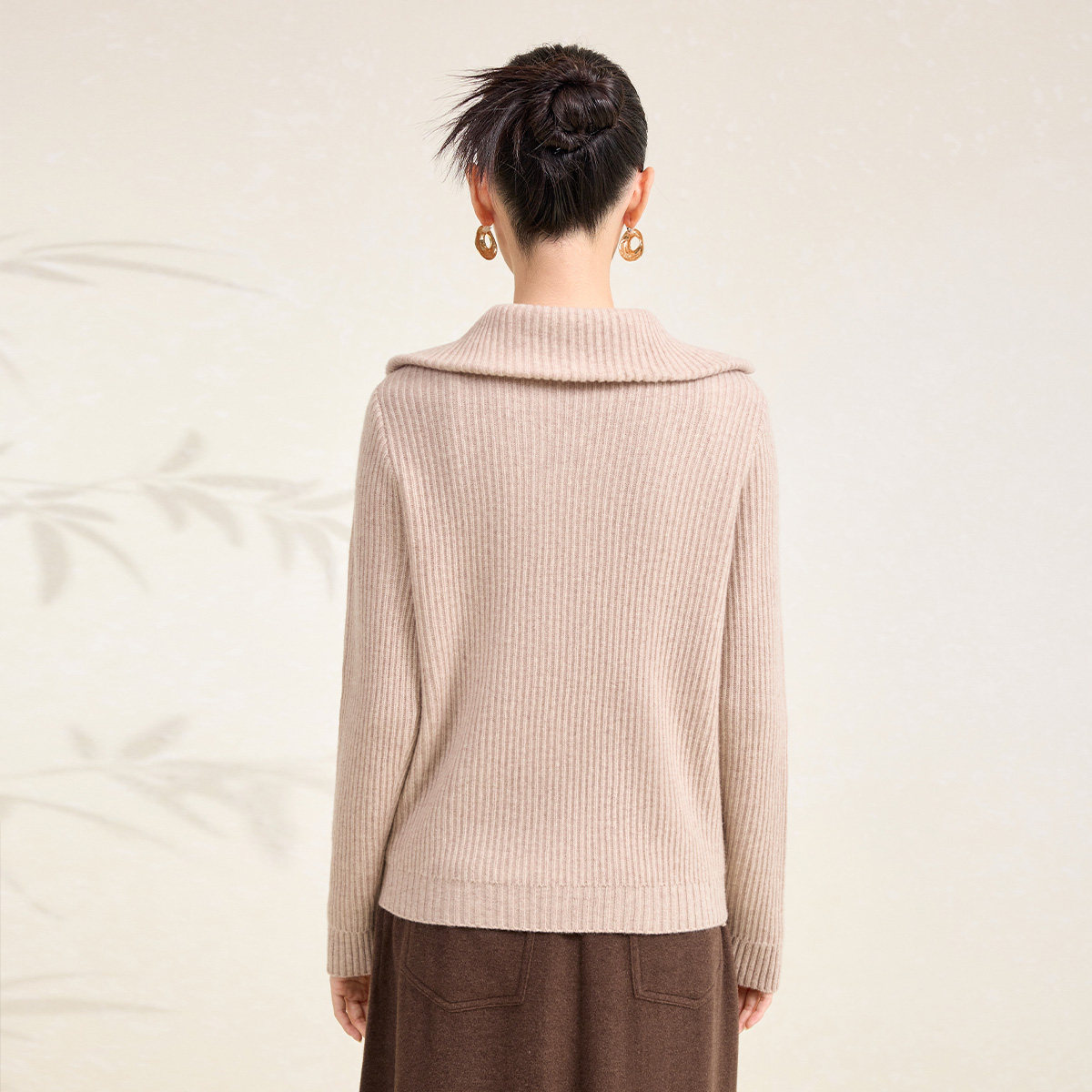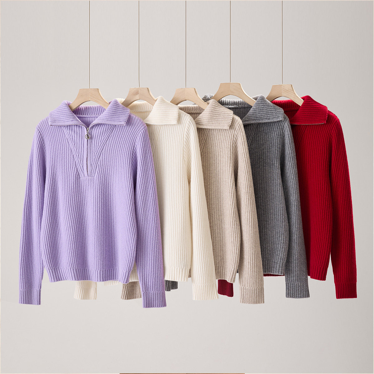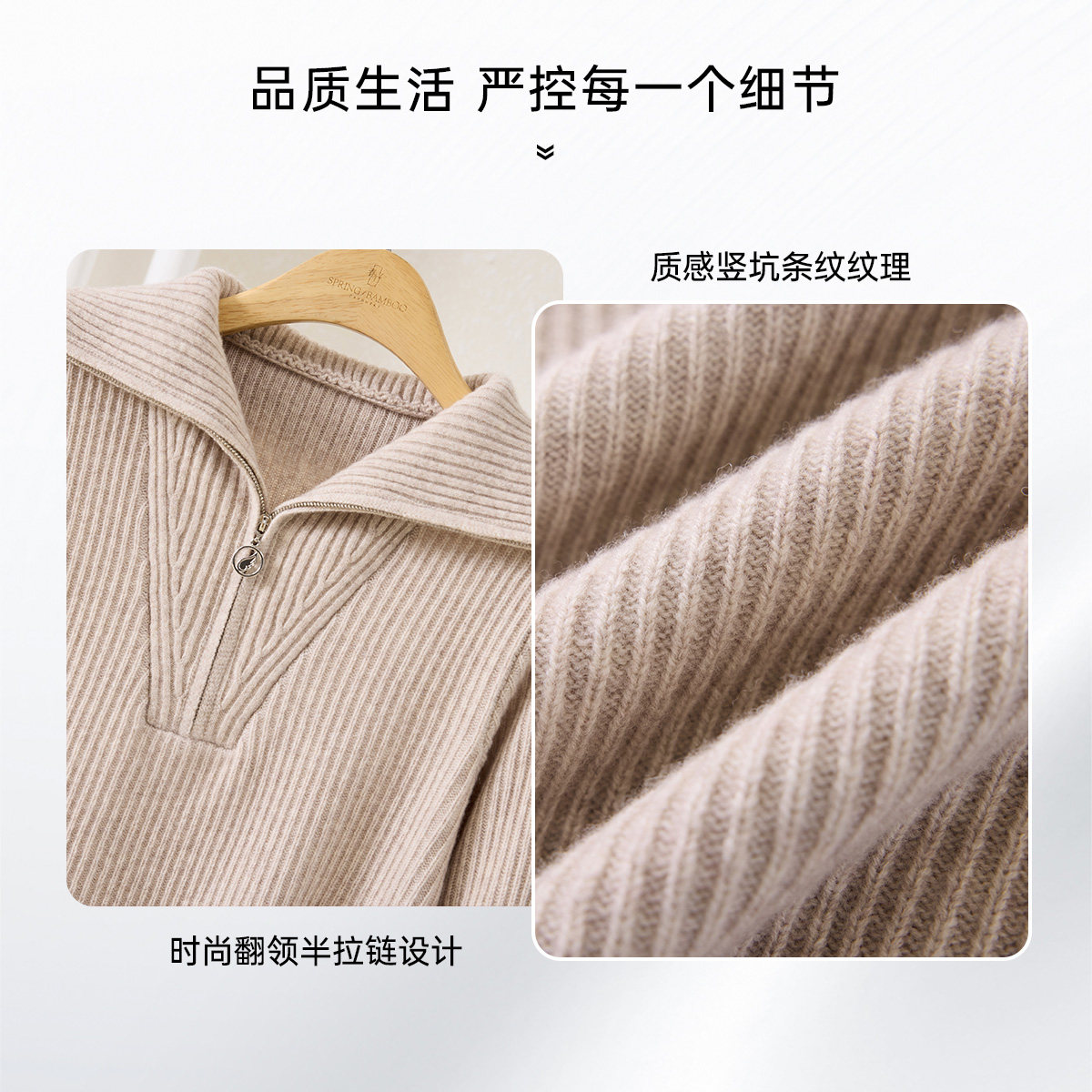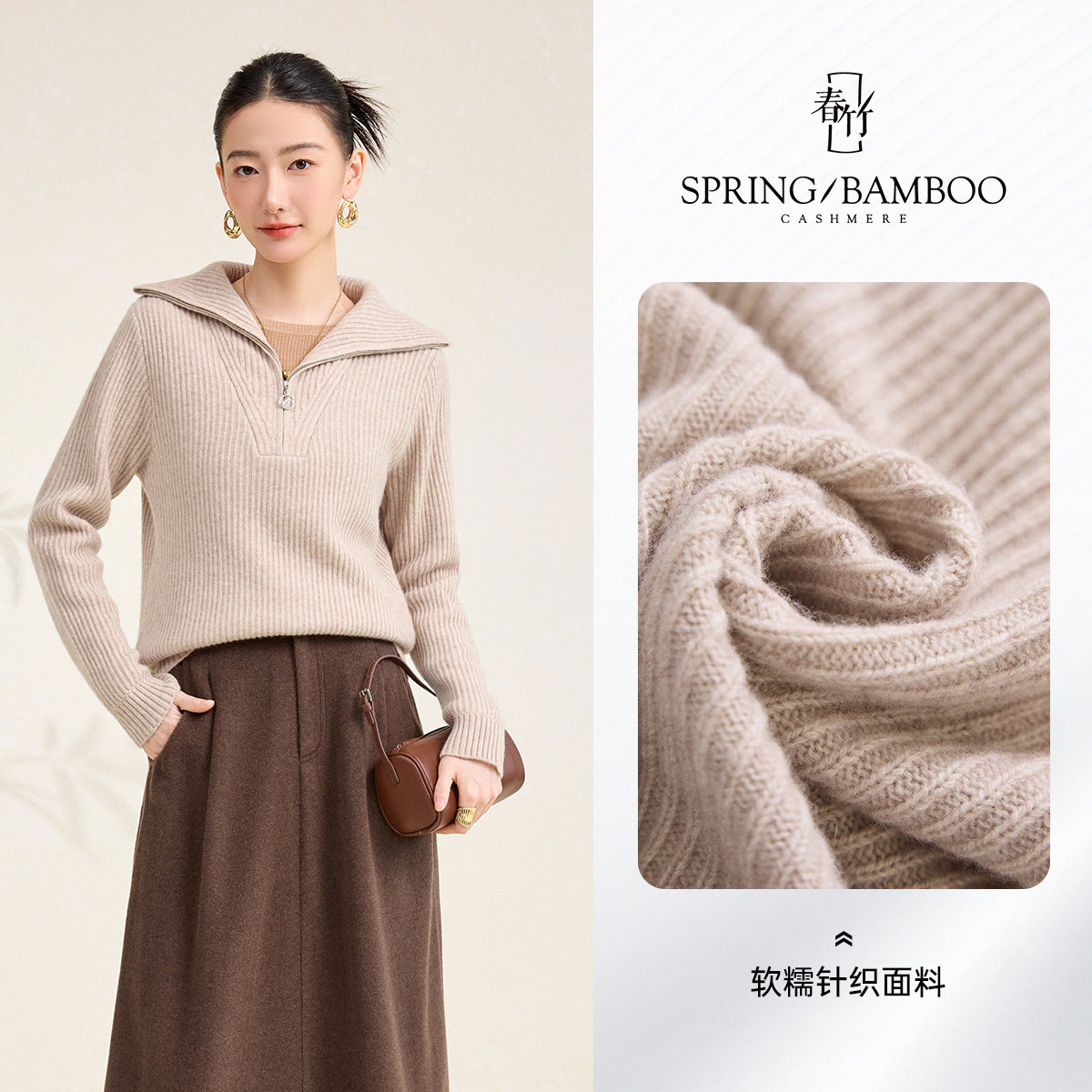高领半襟拉链保暖女高品质羊毛衫 春竹羊毛羊绒混纺厚款 25秋冬新款