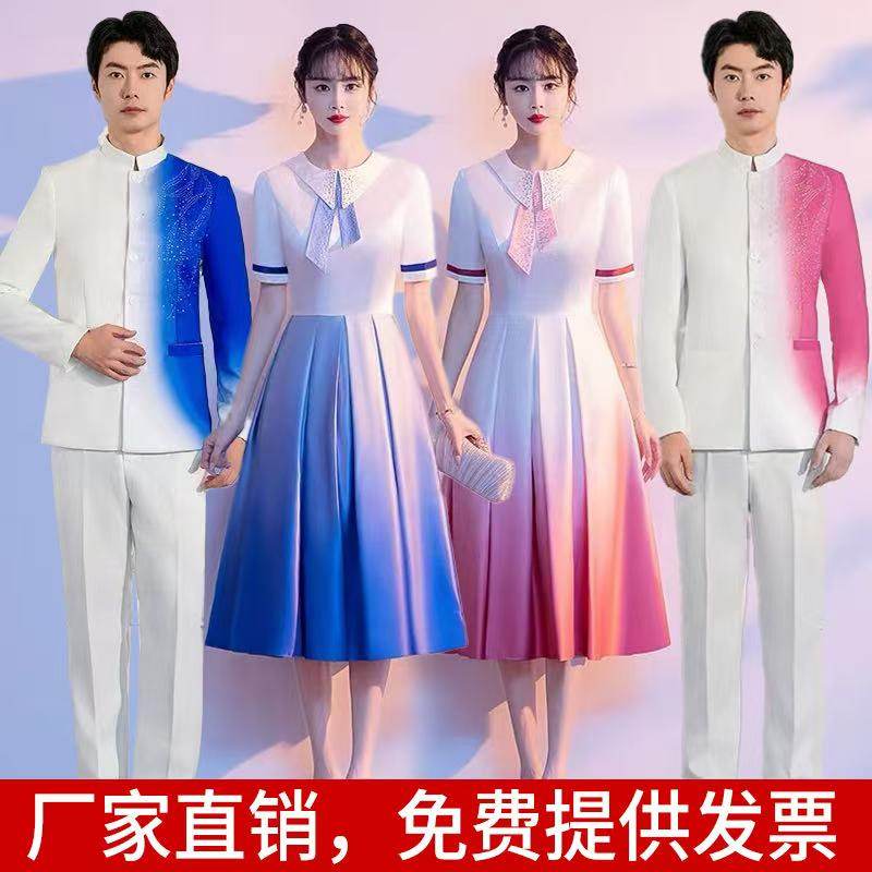 大合唱团演出服女学院风气质支持指挥服装 大学生朗诵红歌比赛服装