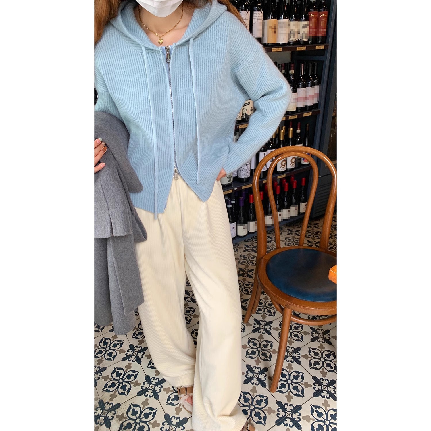 双色毛衣 米花家奶绿色羽绒服 衣橱直播间 白色长裤 所有女生