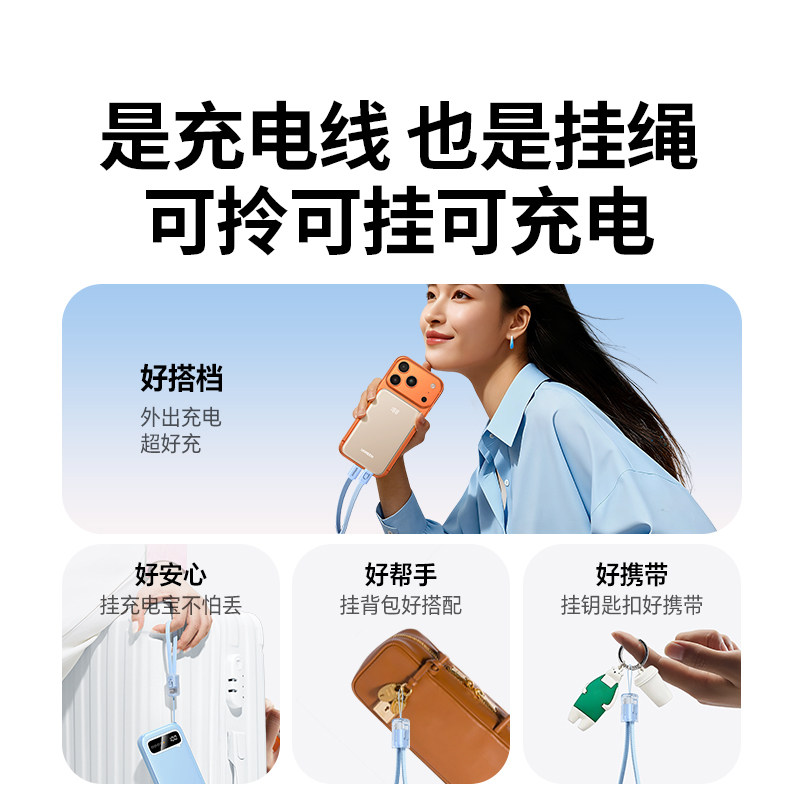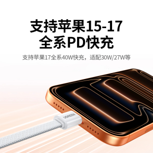 钥匙扣安卓收纳PD60W快充线 充电线便携式 绿联双typec数据线手机挂绳二合一适用iPhone17苹果16 15充电宝短款
