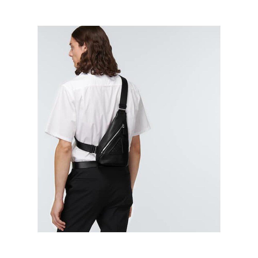 普拉达 黑色时尚 男士 BLACK 舒适胸包 皮革斜挎包 香港直邮Prada