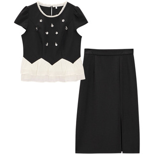 爱依服 通勤法式 微胖 新款 温柔名媛淑女风上下套裙 2025夏季 IEF