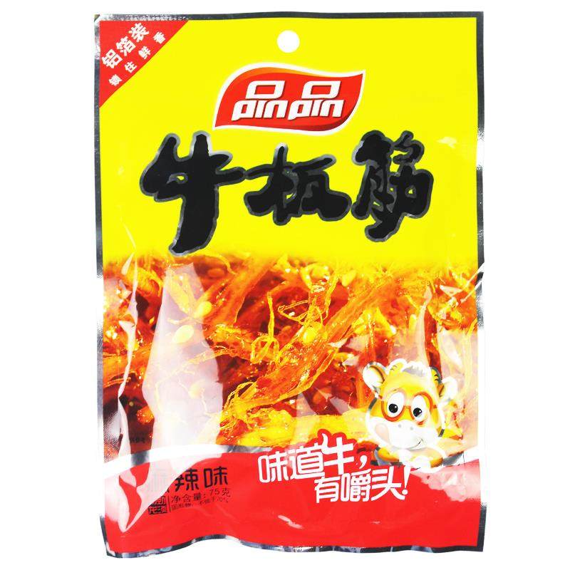香辣牛肉干牛筋熟食小吃零食 麻辣味散装 品品牛板筋75g 5袋小包装