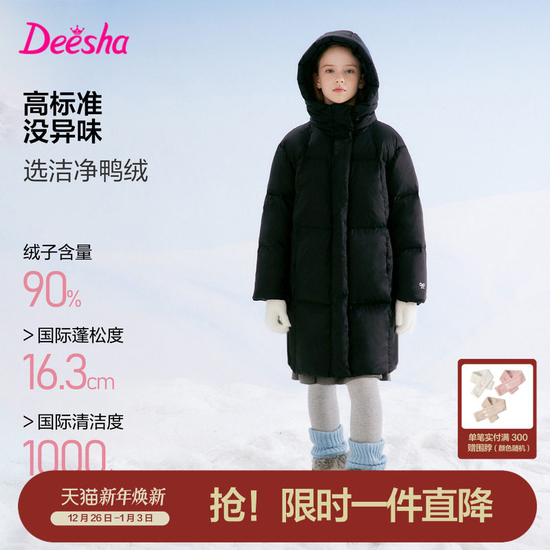 新款 羽绒服秋冬季 女孩儿童连帽三防外套 女童长款 笛莎官方旗舰童装