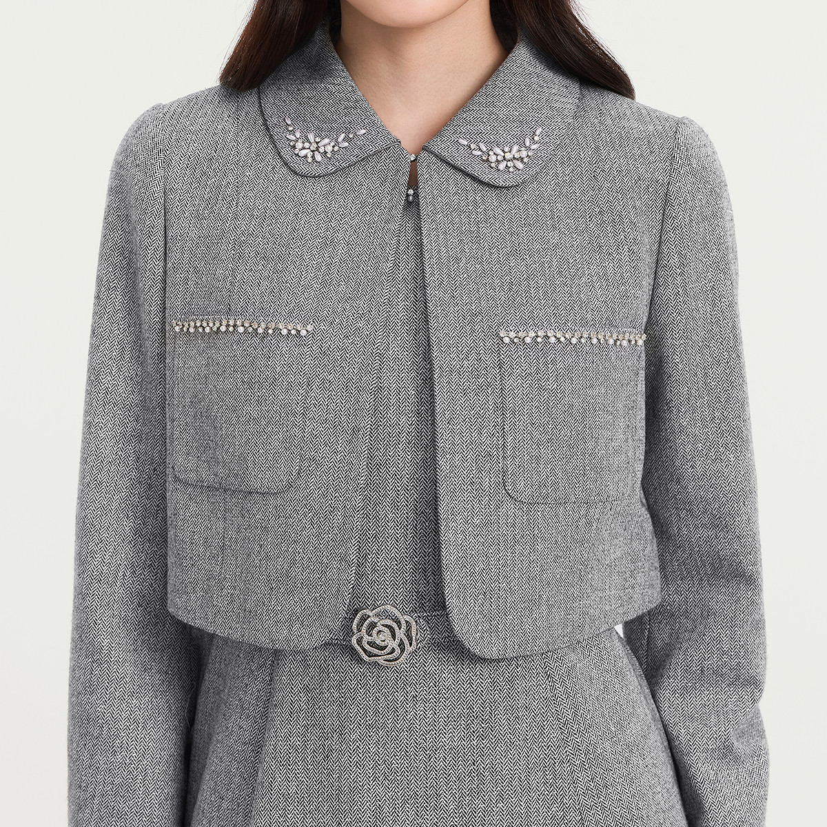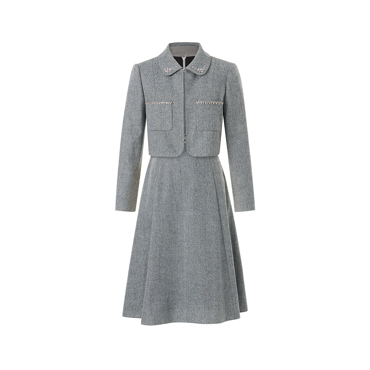 女 气质珠钻格蕾灰两件套裙装 Koradior珂莱蒂尔商场同款 2025秋新款