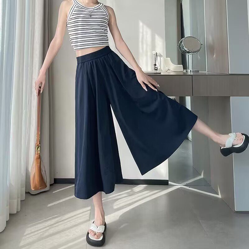 女夏季 宽松休闲百搭裤 高腰薄款 显瘦超轻七分裤 裙潮 大码 冰丝阔腿裤