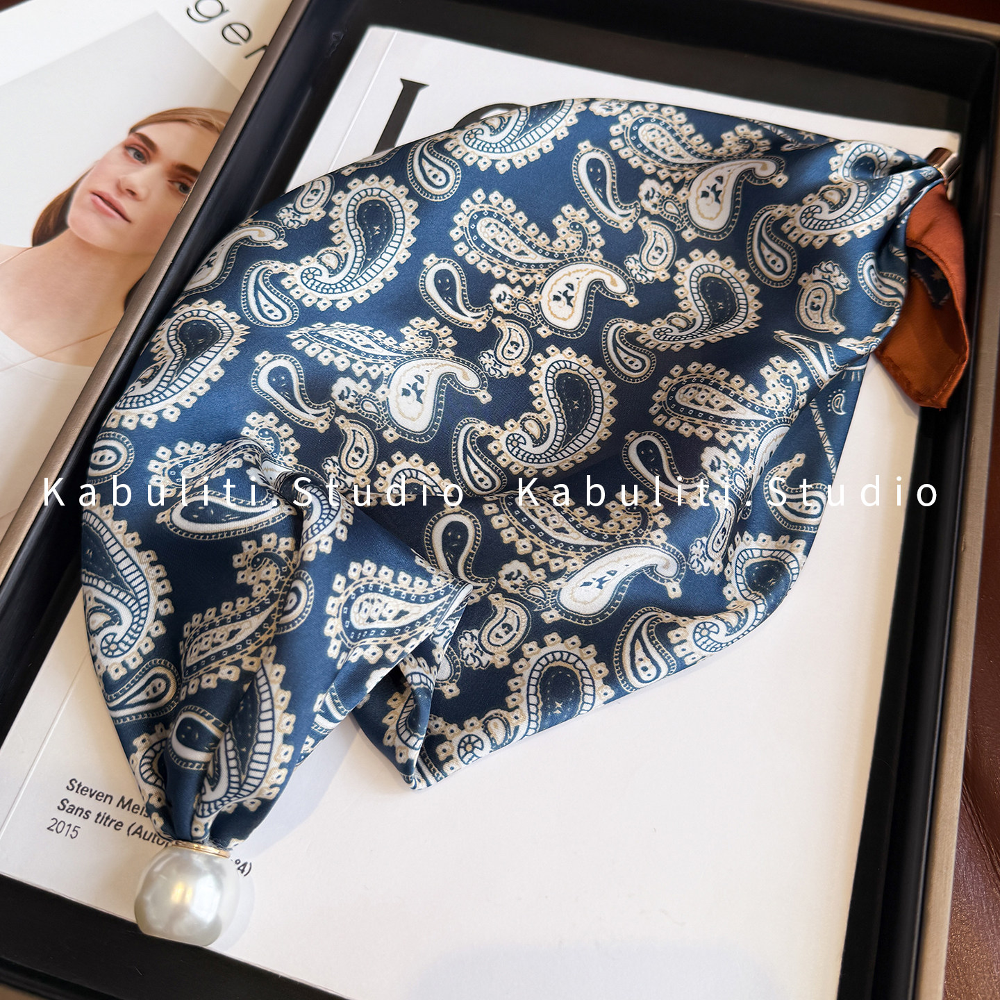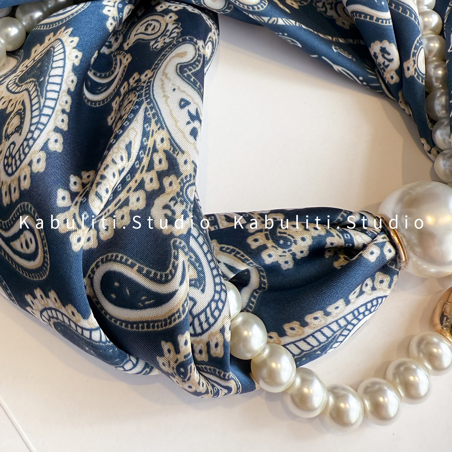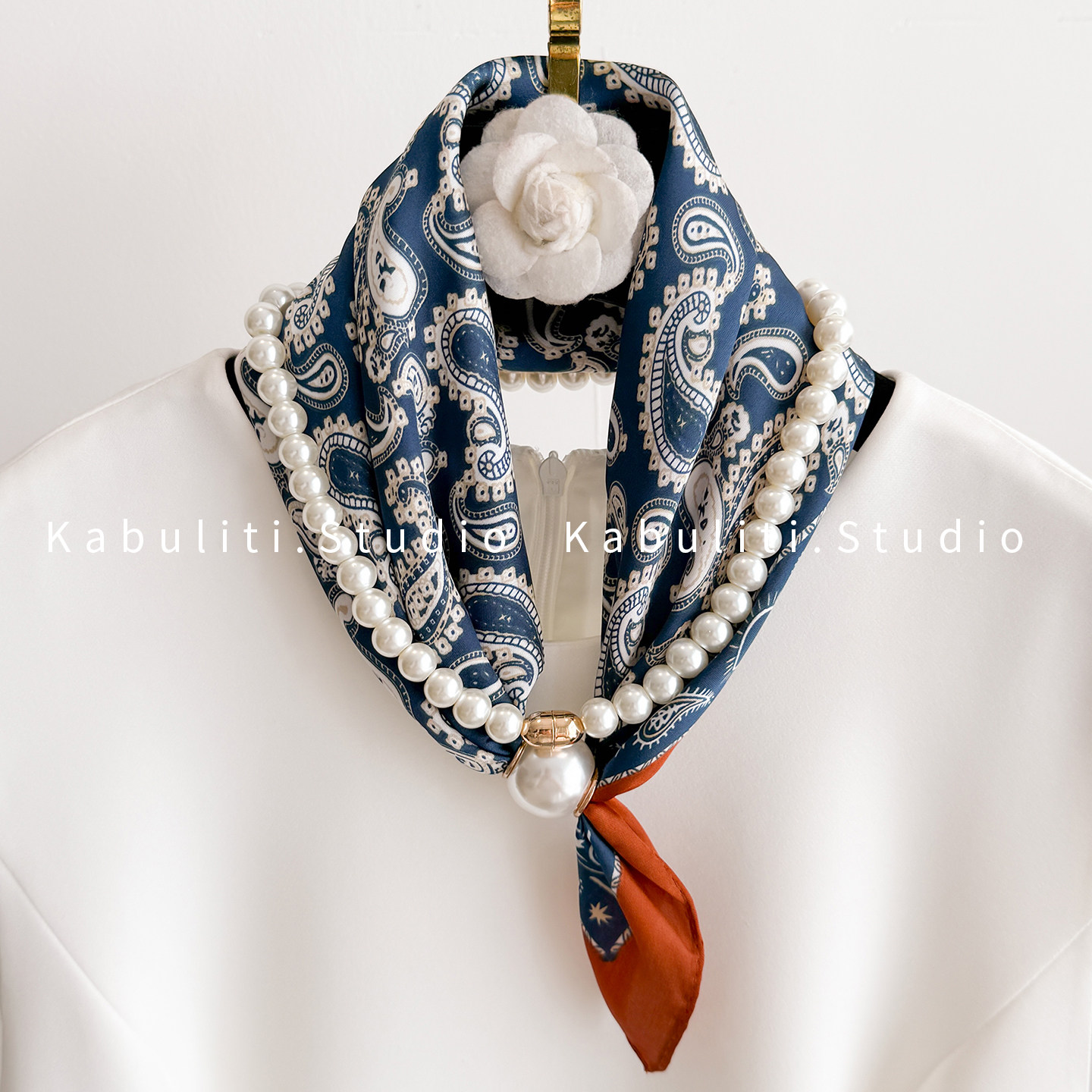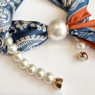 磁吸扣珍珠项链小耳朵窄长条丝巾女黄色护颈围脖子搭配衬衫 薄围巾