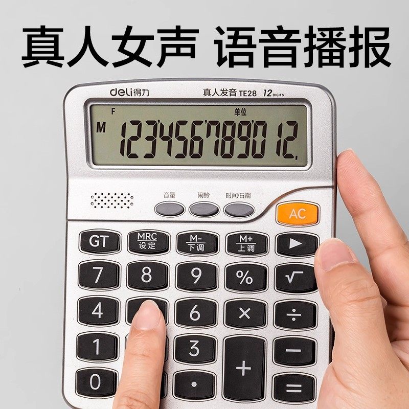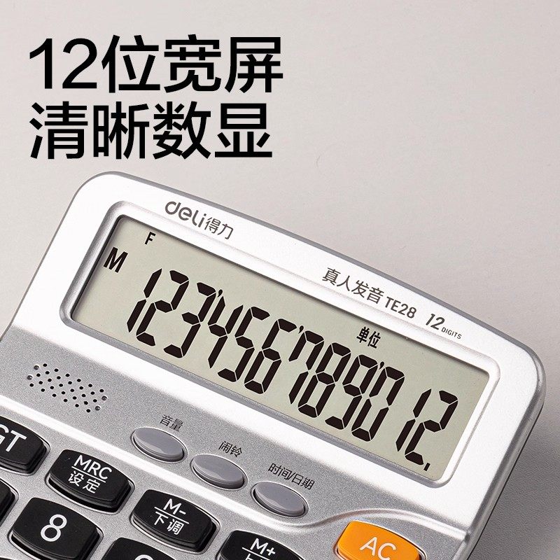 得力TE28语音计算器真人发音大屏商务办公会计专用计算机SJJF