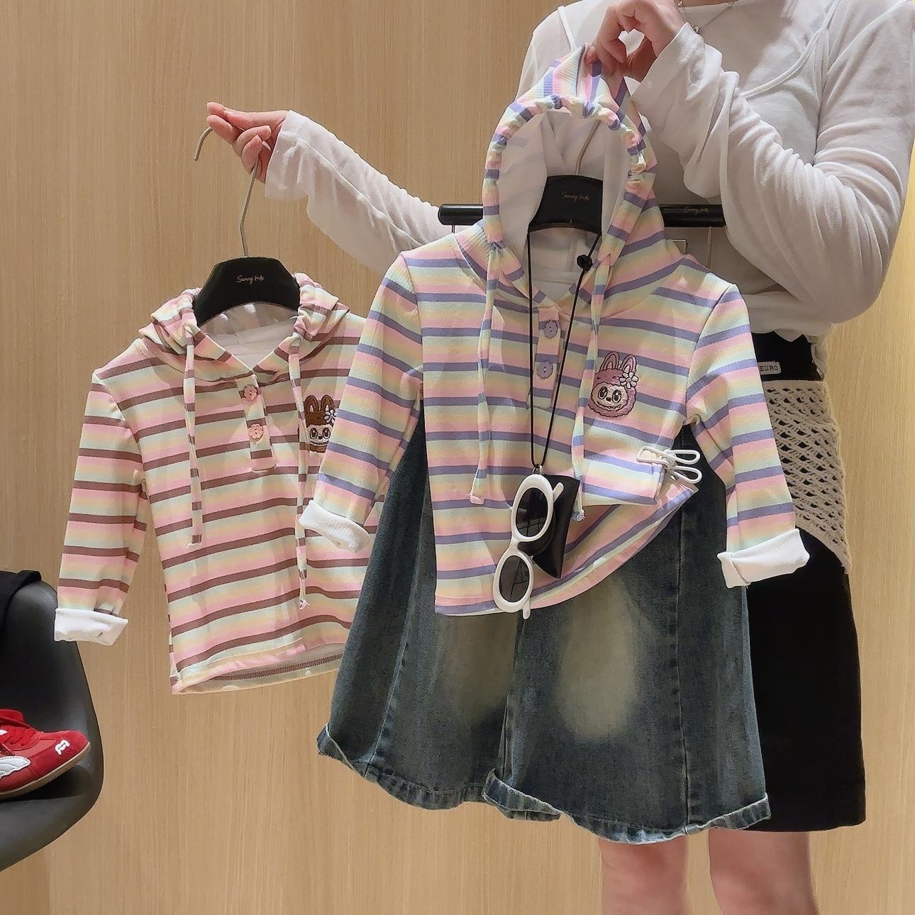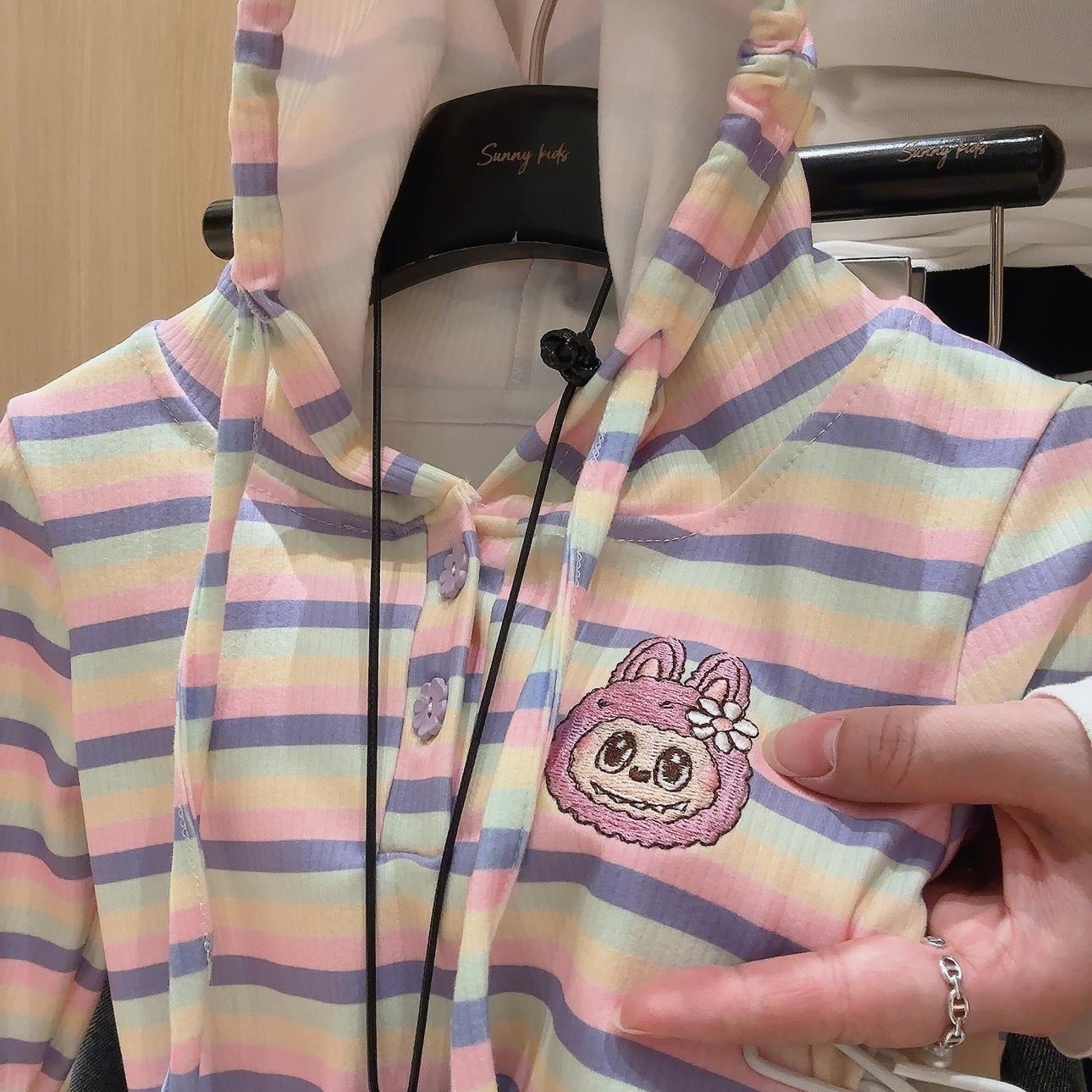 女童洋气百搭网红刺绣彩条连帽卫衣上衣2025秋季 CEN003 CEN新款