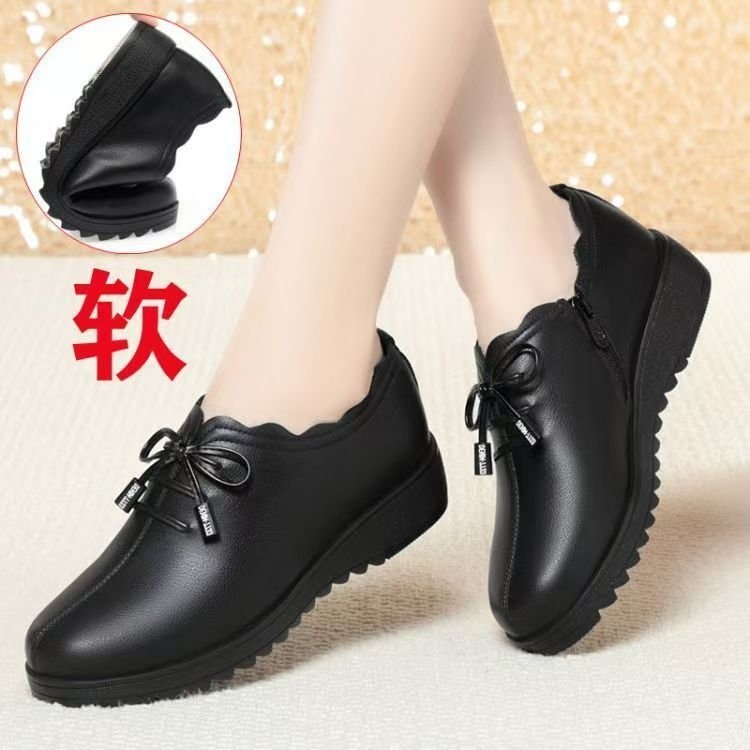防滑平底百搭小皮鞋 中老年舒适妈妈鞋 女2025新款 品牌真皮软底单鞋