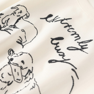 米白百搭T恤女 春秋新品 wana try100%棉趣味狗狗刺绣含披肩长袖