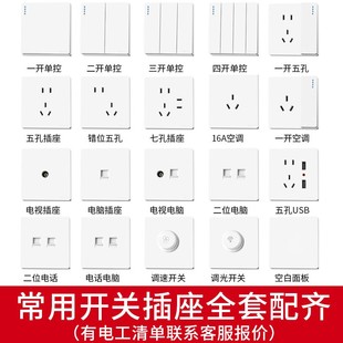 国际电工86型墙壁开关插座面板全屋套餐一开五孔六孔四孔多孔家用