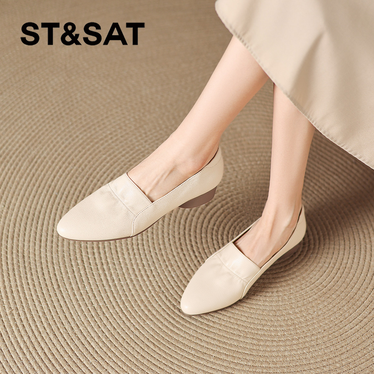 低跟通勤皮鞋 秋冬一脚蹬软底奶奶鞋 女2025新款 星期六羊皮尖头单鞋