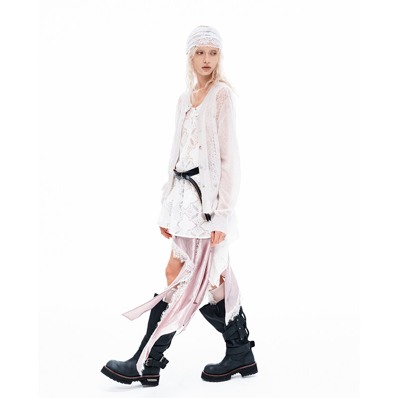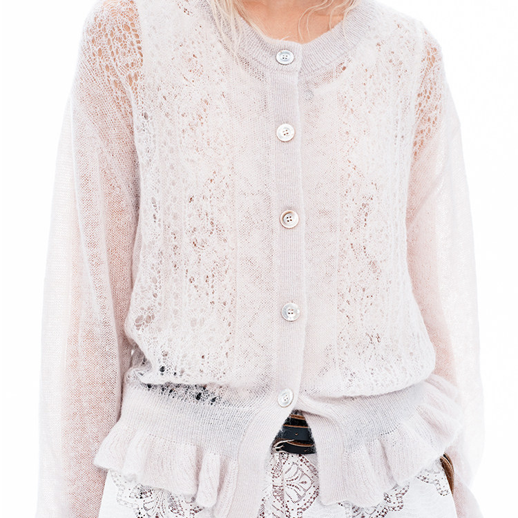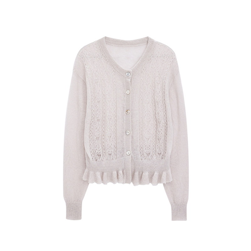 秋季 毛衣女2025新款 灰色空气感蕾丝马海毛花边针织开衫 VINZOO