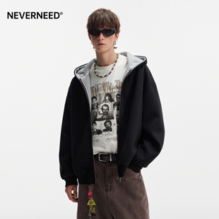 外套 双拉链撞色开衫 NEVERNEED美式 cleanfit连帽卫衣男女boxy短款