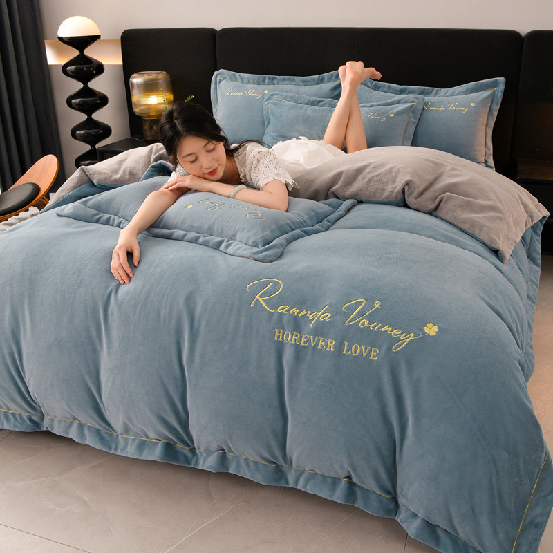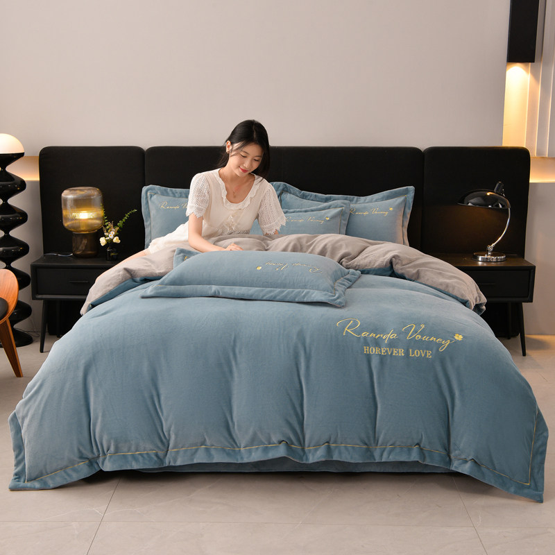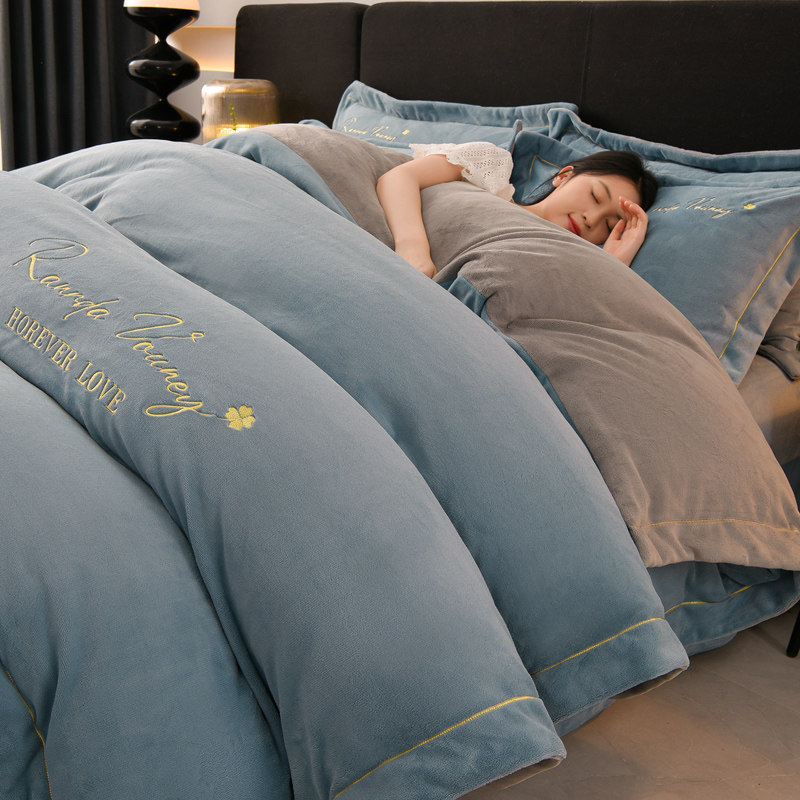冬季 床上用品 加厚保暖牛奶绒四件套珊瑚绒被套床单法兰绒床笠款