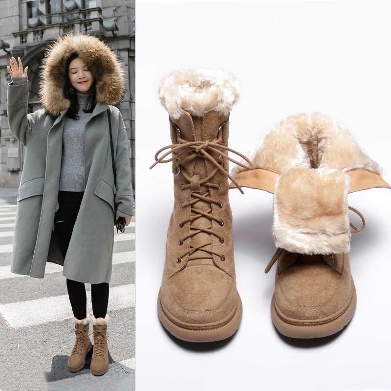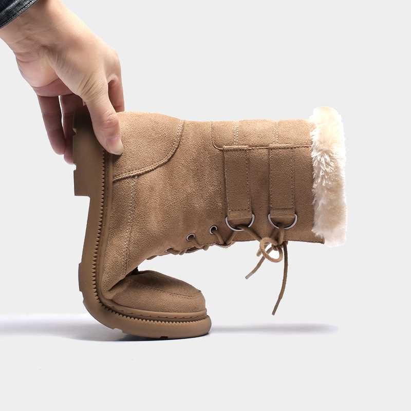 真皮厚底马丁靴女2025年秋冬新款 防滑软底羊毛雪地靴防水加厚棉靴