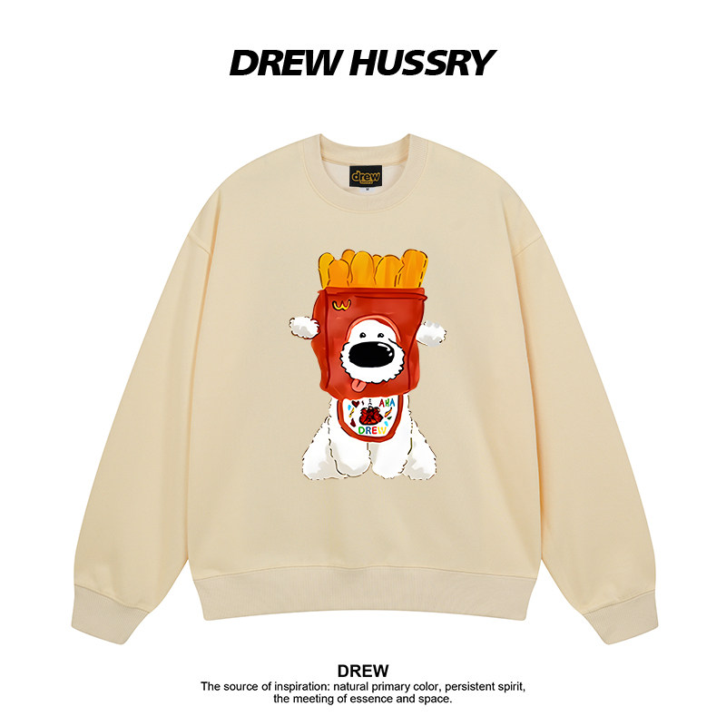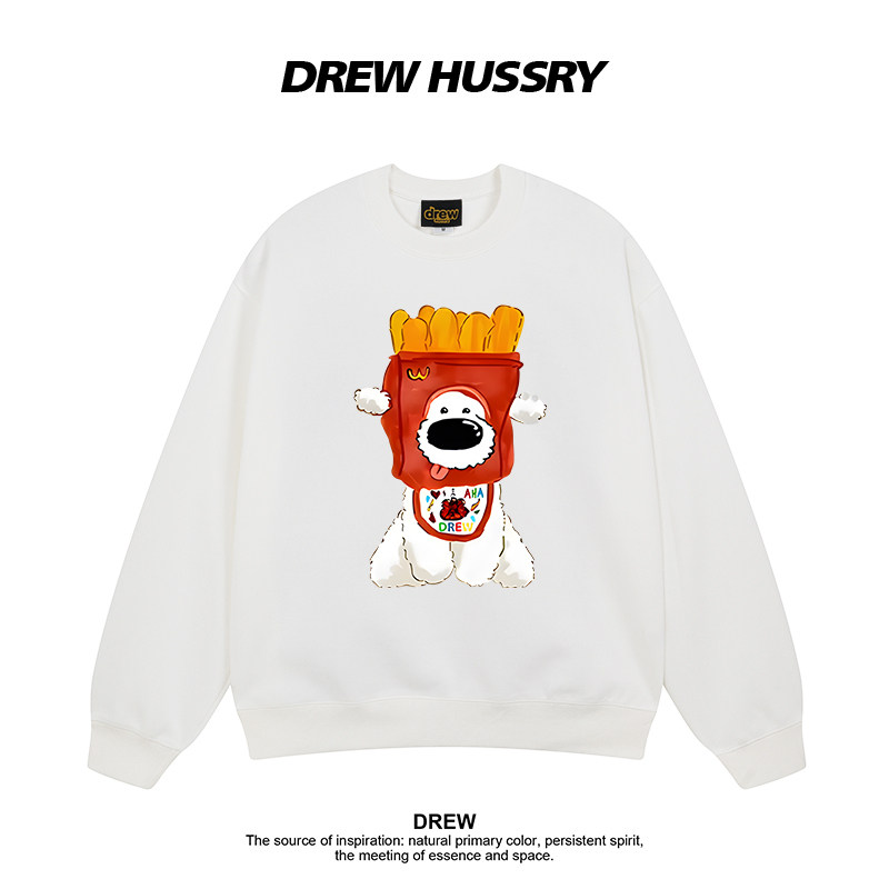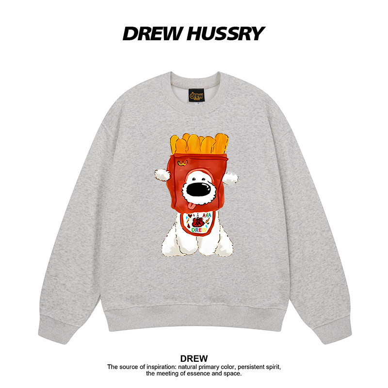 Drew美式 上衣 潮牌薯条小狗印花圆领卫衣男女秋冬加绒加厚情侣装