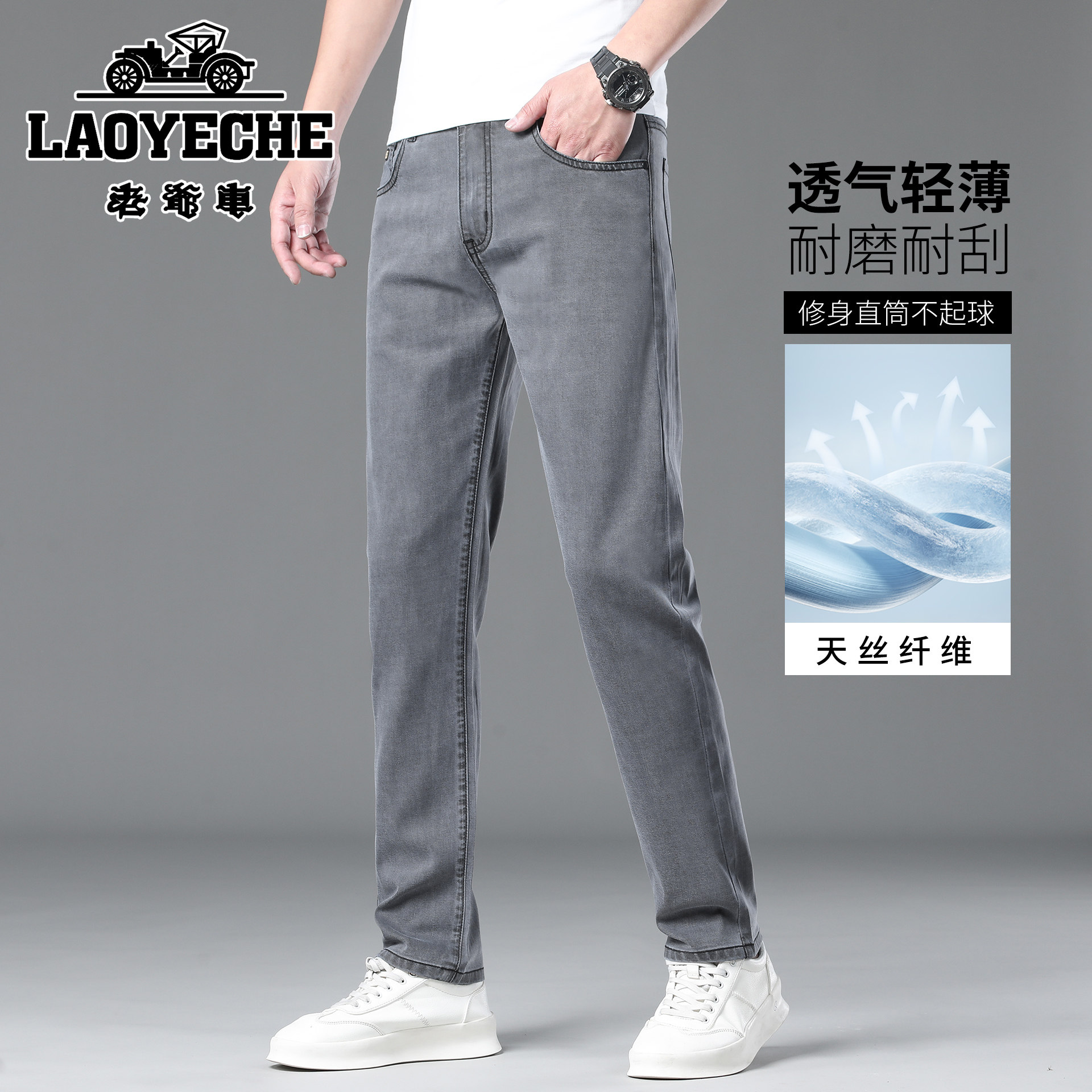 夏季 2026新款 薄款 直筒修身 子男 老爷车高端天丝牛仔裤 休闲长裤 男士