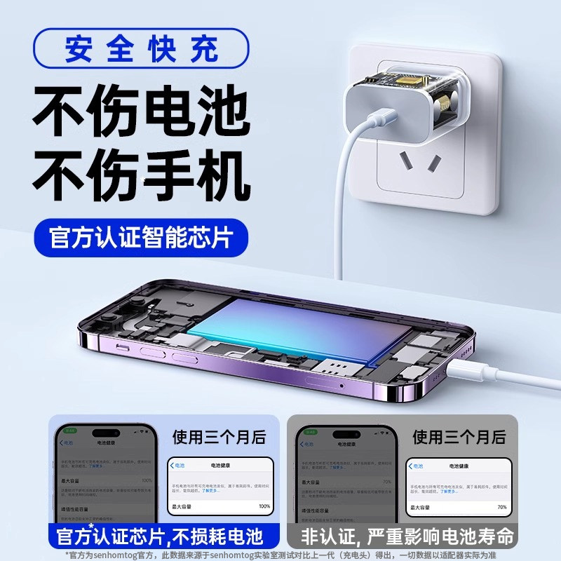 senhomtog适用苹果17充电器头iphone16手机15promax插头14充电头45W数据线13套装 30W快充 国家3C认证