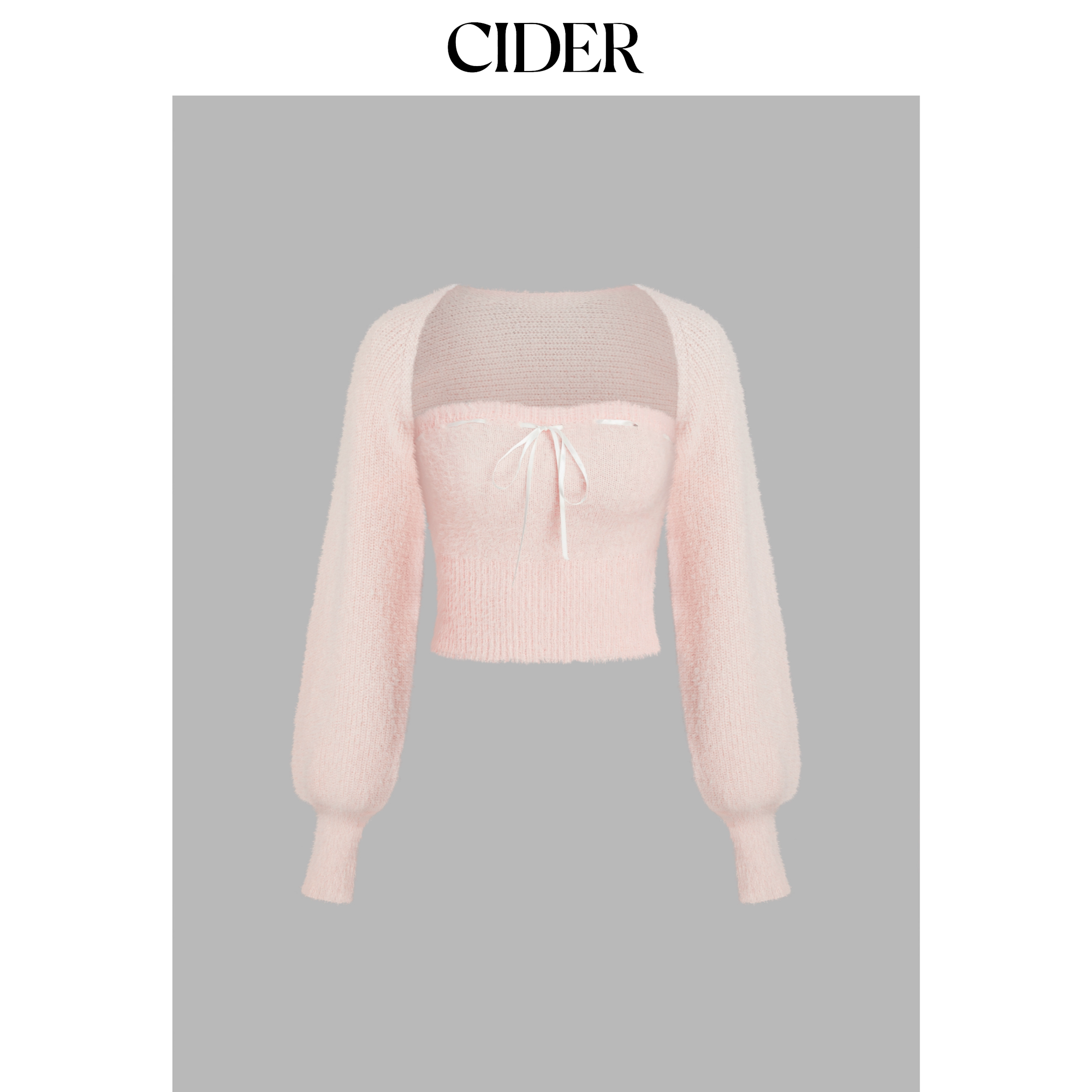 蝴蝶结针织衫 正品 CIDER美式 抹胸配披肩105547374 明星同款