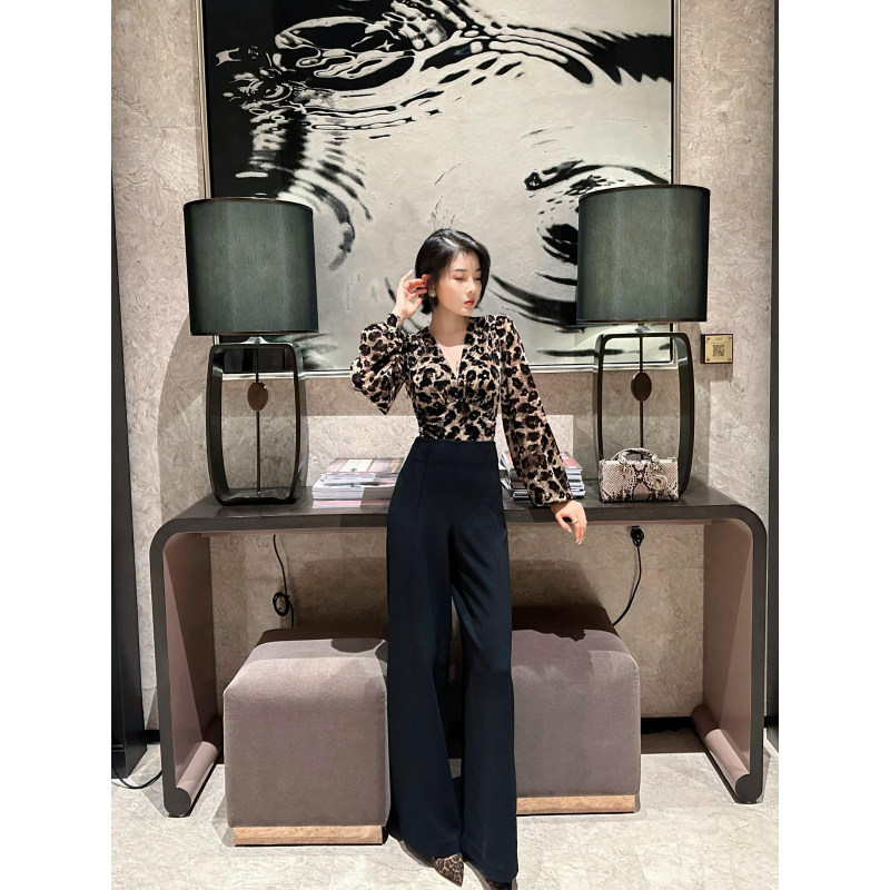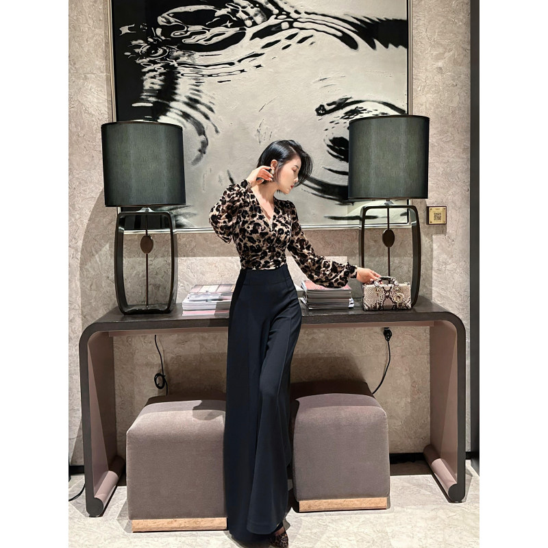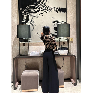 宽松百搭时髦气质显瘦阔腿裤 XULU原创秋季 泡泡麻高腰微弹纯色长裤