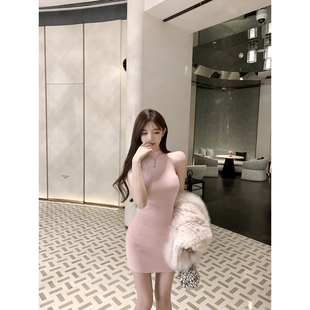 若语定制 半高领挖肩坑条显瘦连衣裙纯欲气质包臀打底裙 娇娇女友