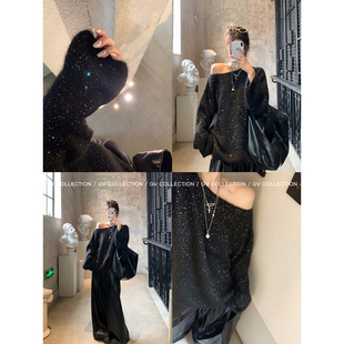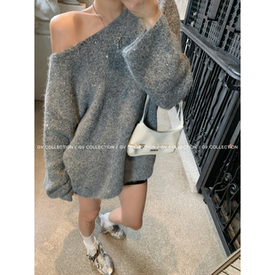 GV大白哥 露肩细闪柔软宽松羊毛毛衣慵懒高级感上衣女秋 星陨入夜