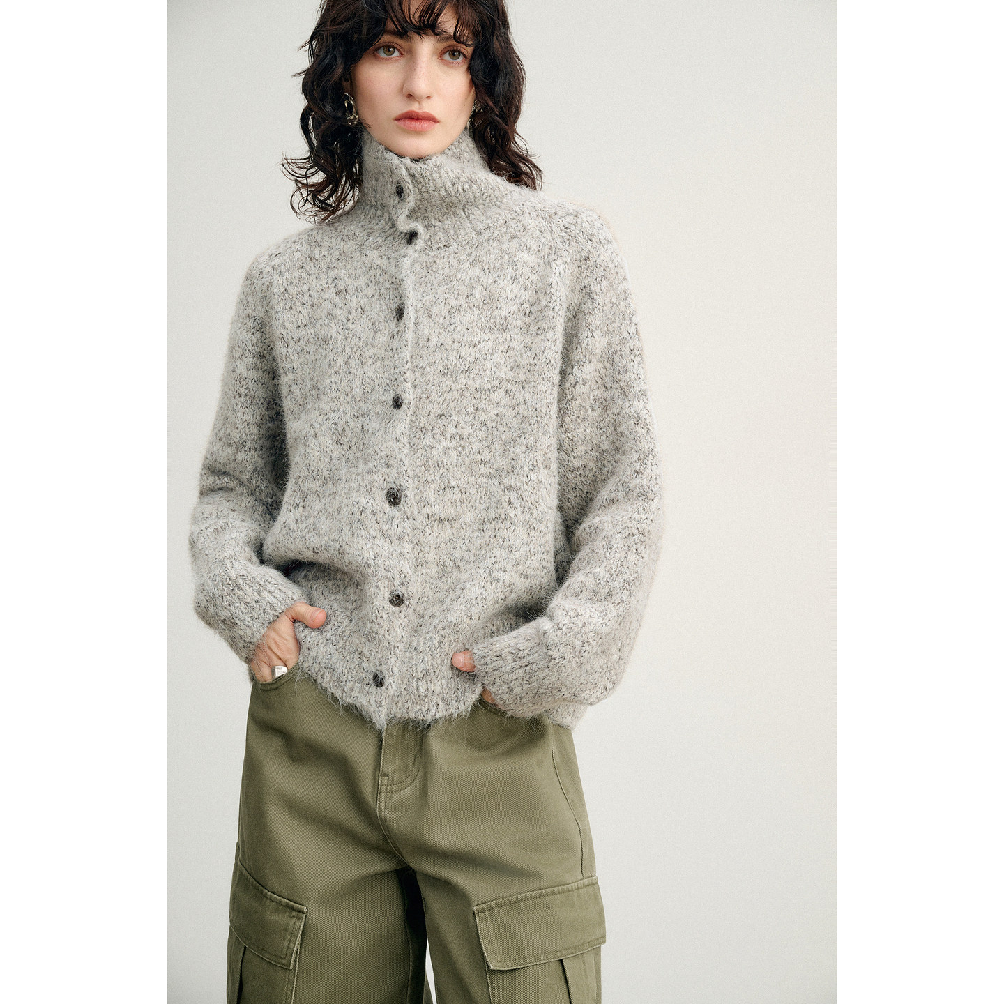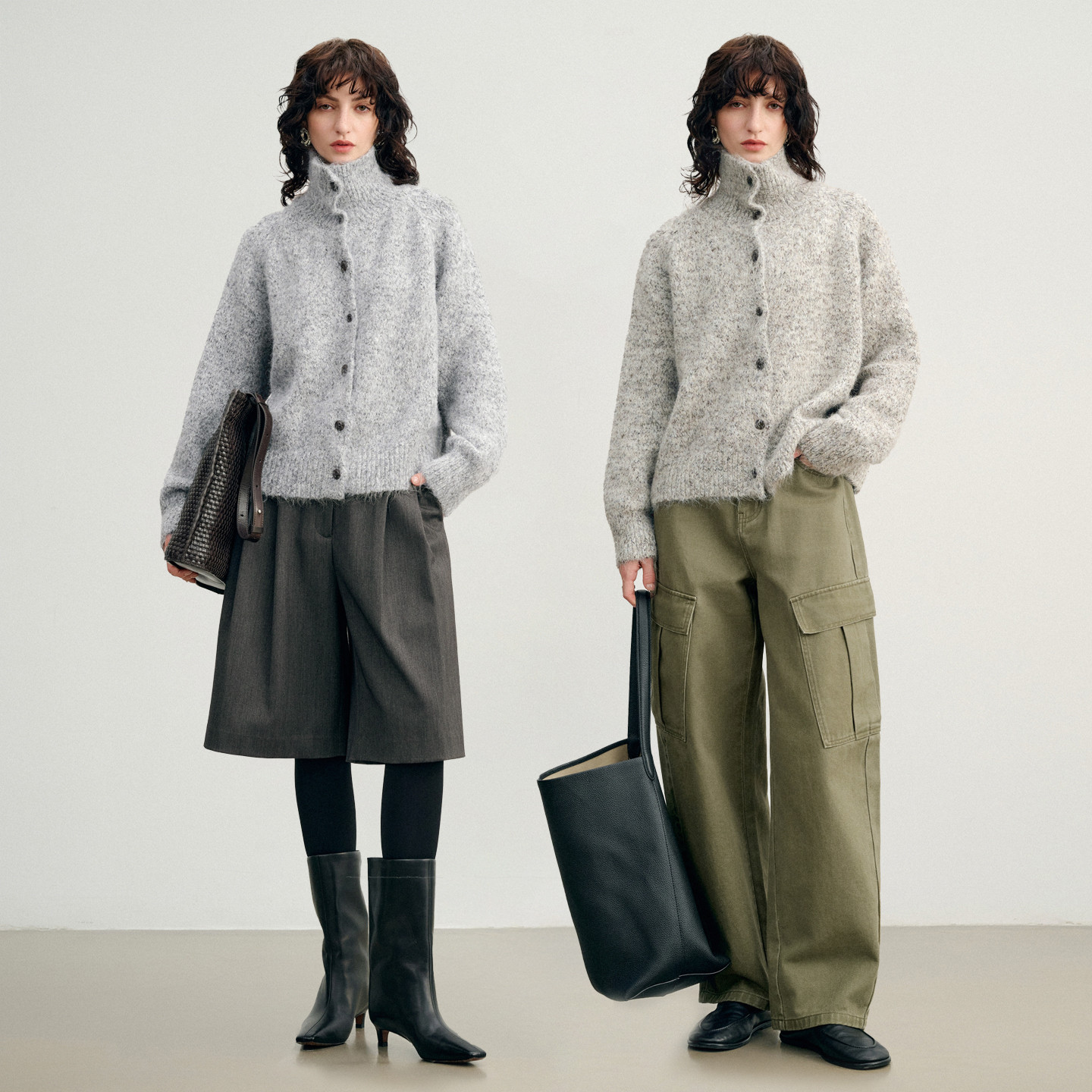 百家好秋冬慵懒绵羊毛高领短款 上衣女 毛衣2025高级感百搭针织开衫