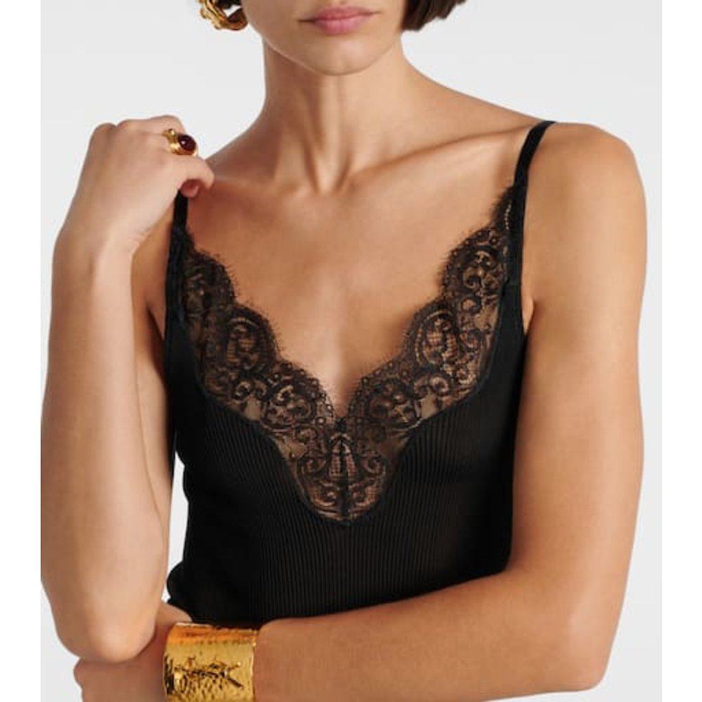 女士 圣罗兰 蕾丝边真丝针织布吊带连衣裙 Laurent 香港直邮Saint