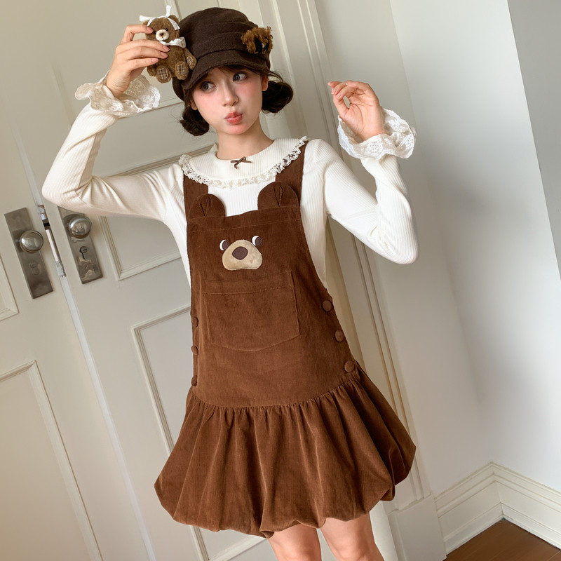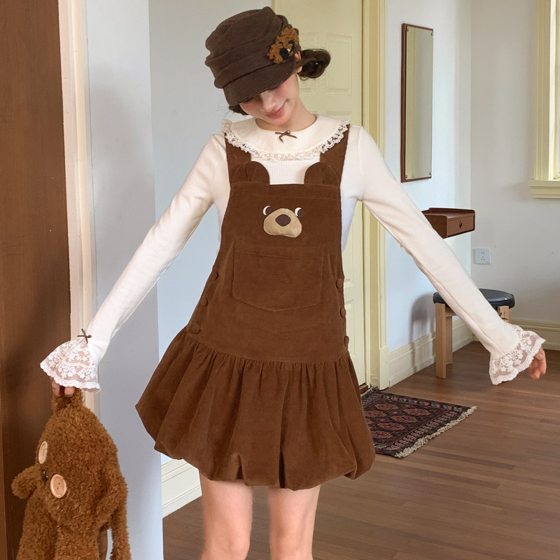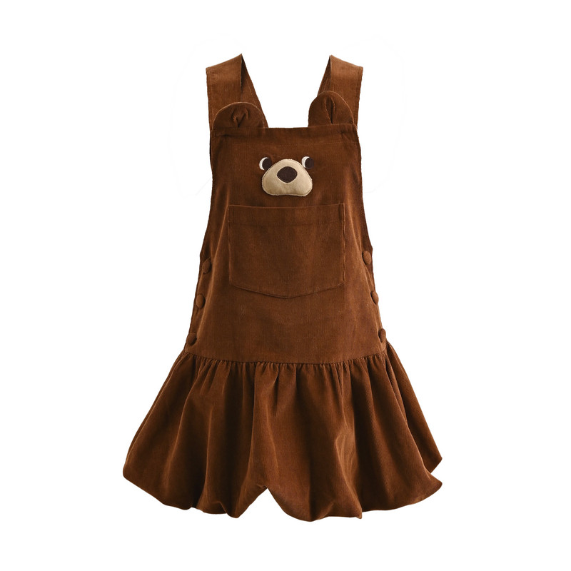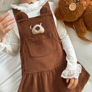 森女部落甜美纯棉连衣裙女2025新款 冬立体小熊设计感灯芯绒背心裙