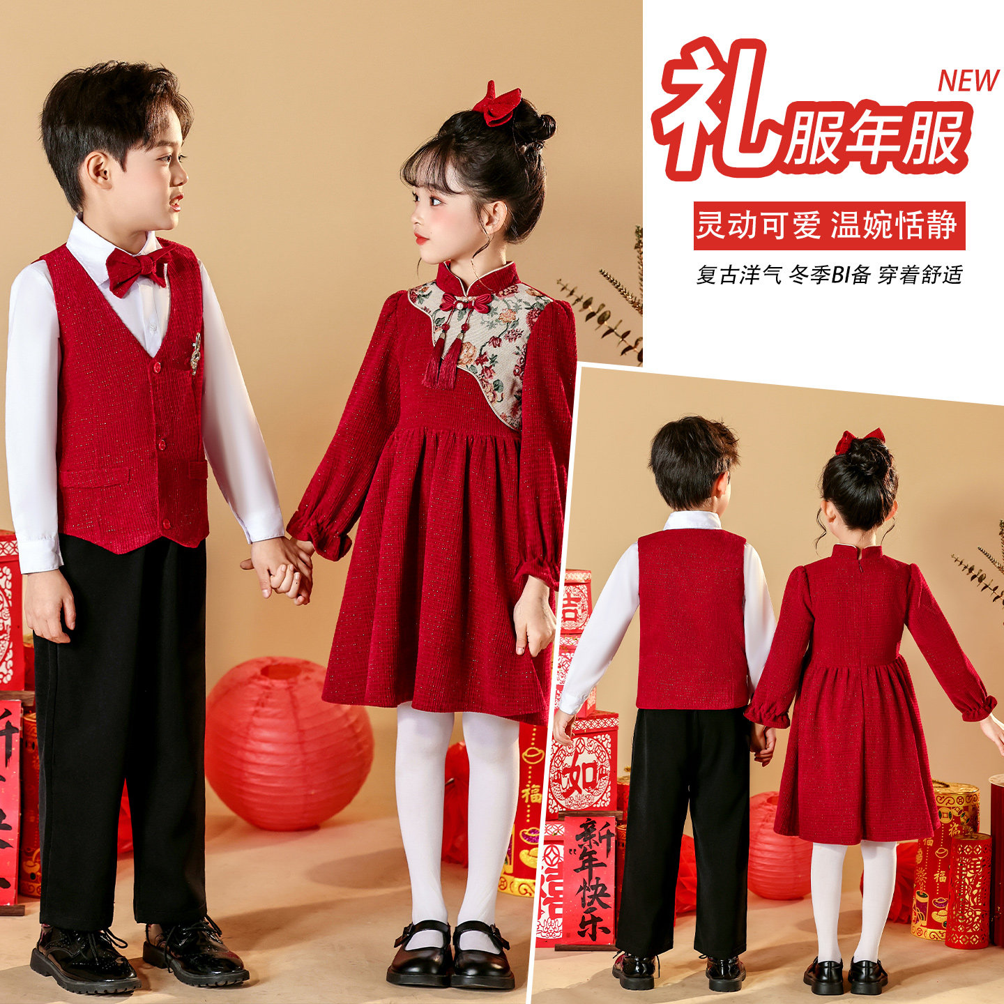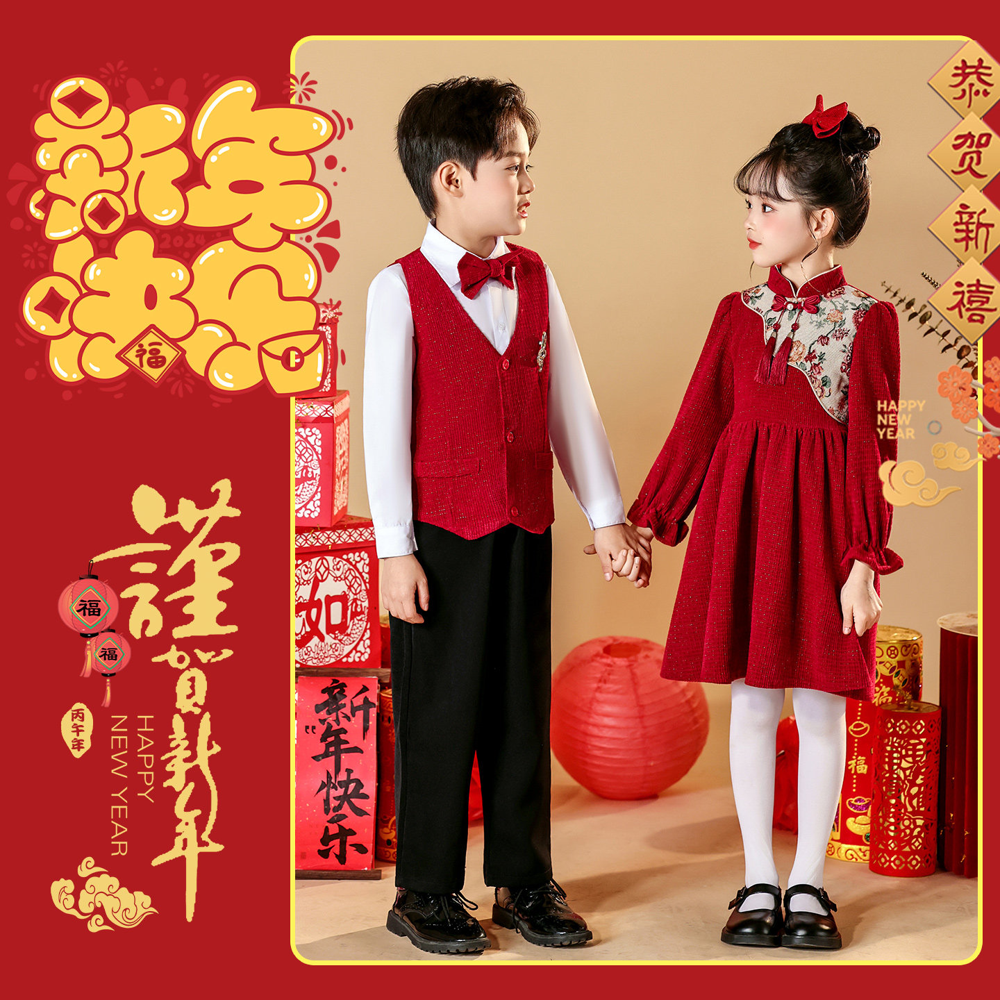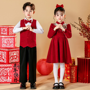 新款 中国风儿童演出服小学生大合唱团表演服幼儿诗歌朗诵红色爱国