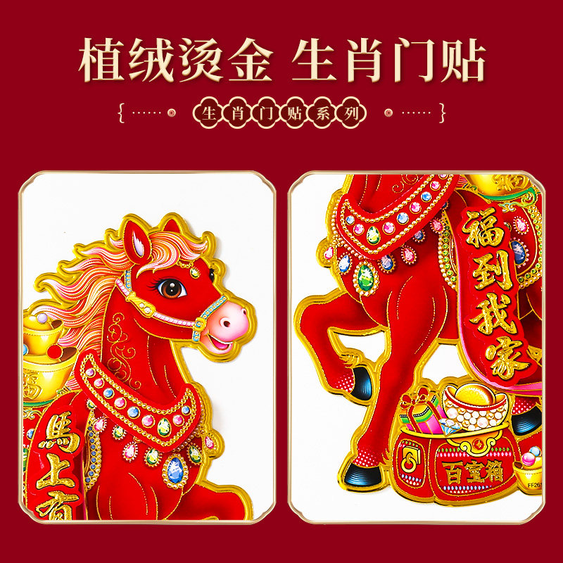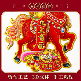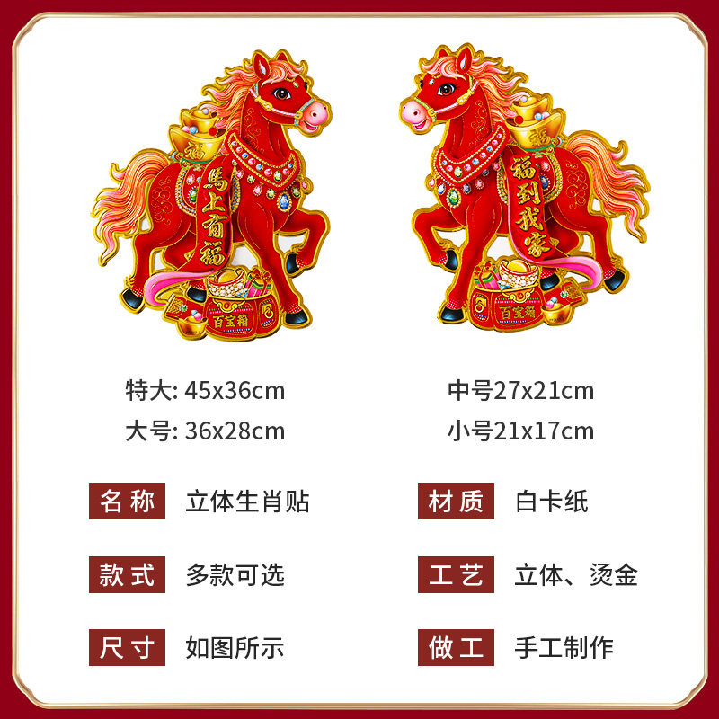 2026马年生肖立体门贴卡通新款 饰福字烫金立体大号年画春节贴纸 装