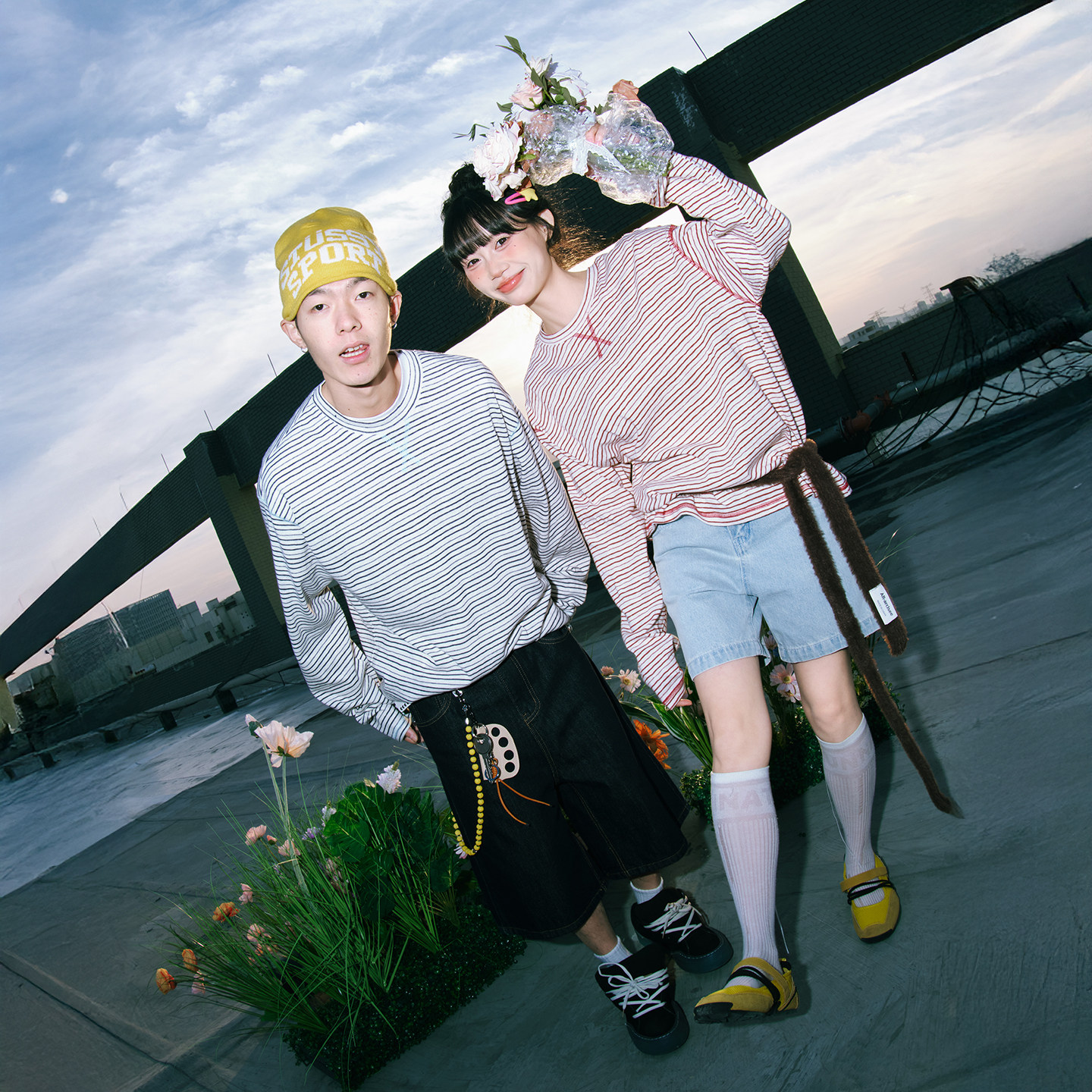 潮流条纹长袖 打底衫 T恤男2025秋季 情侣款 上衣女 新款 lemanism美式