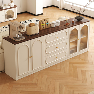 实木餐边柜靠墙一体茶水柜边柜法式 复古多层储物柜客厅茶水酒柜