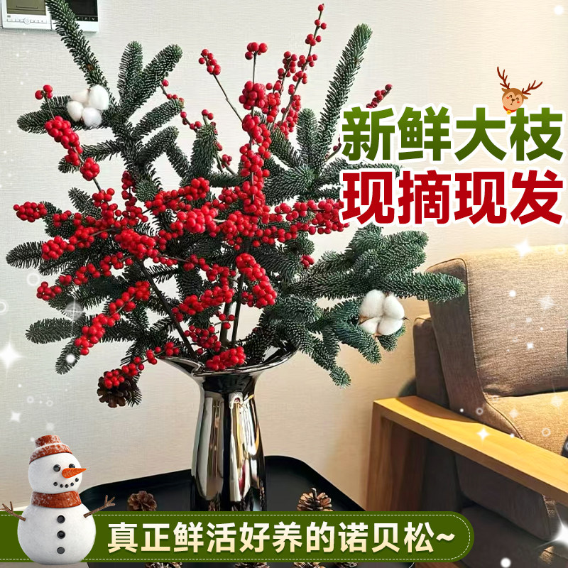 诺贝松圣诞节红色冬青果花束真花DIY手工制作天竺女装 饰花材礼物