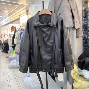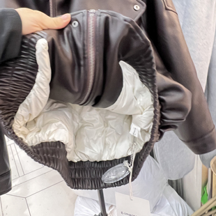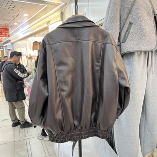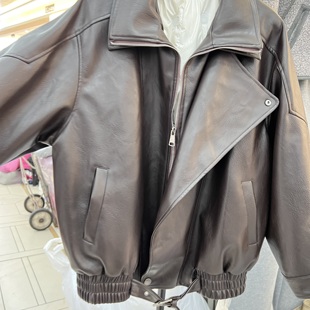 羽绒内胆2025冬新款 宽松休闲百搭翻领皮衣外套女机车服上衣80208