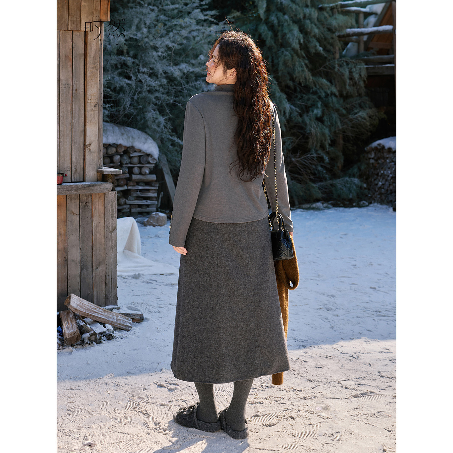 灰色miu系波点羊毛呢半身裙女秋冬新款 胖m高腰显瘦防走光百褶短裙