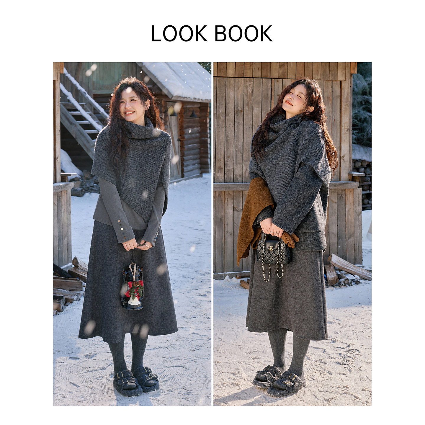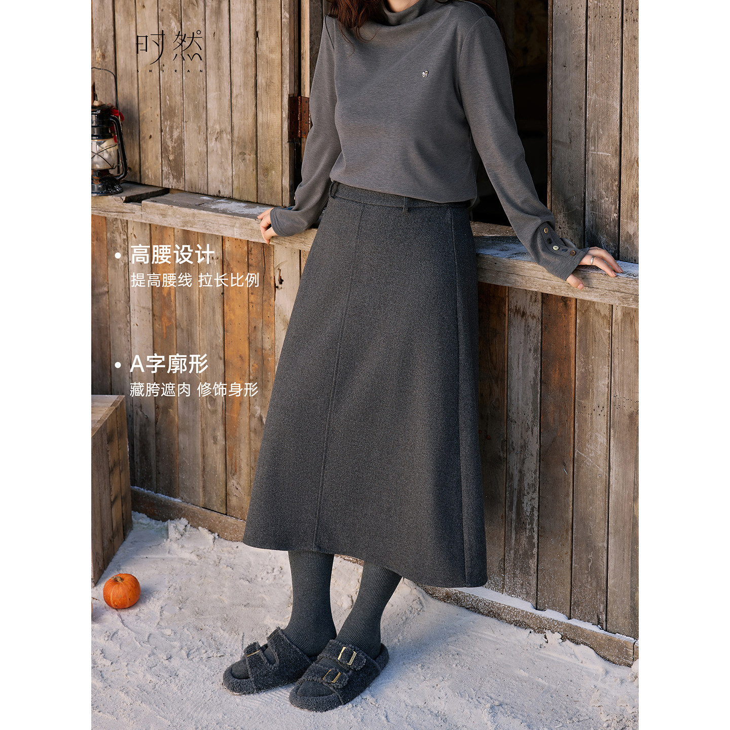 加厚高腰设计显瘦宽松半身裙裤 新款 2025年秋冬季 灰色百搭毛呢裙裤