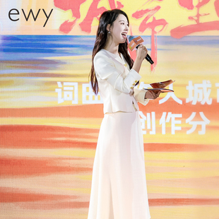 ewy面试优雅风米白色西装 主持人两件套 套裙女春秋气质通勤职业装