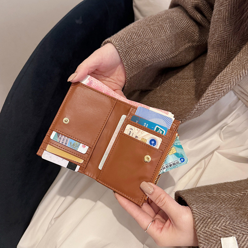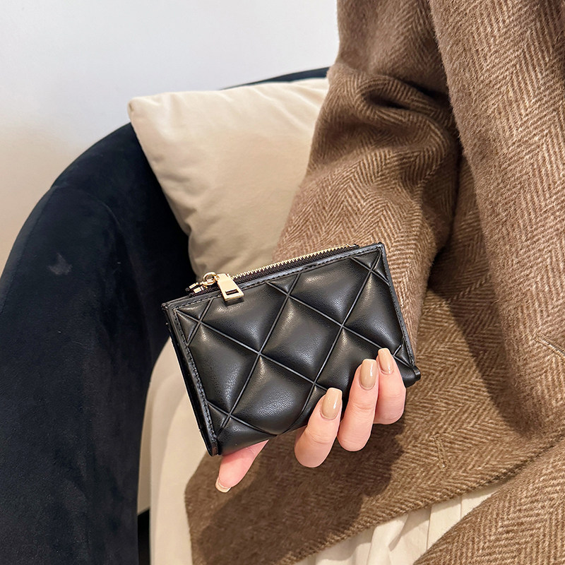 小众菱格小钱包女短款 大容量多卡位简约日韩风拉链搭扣卡包零钱夹