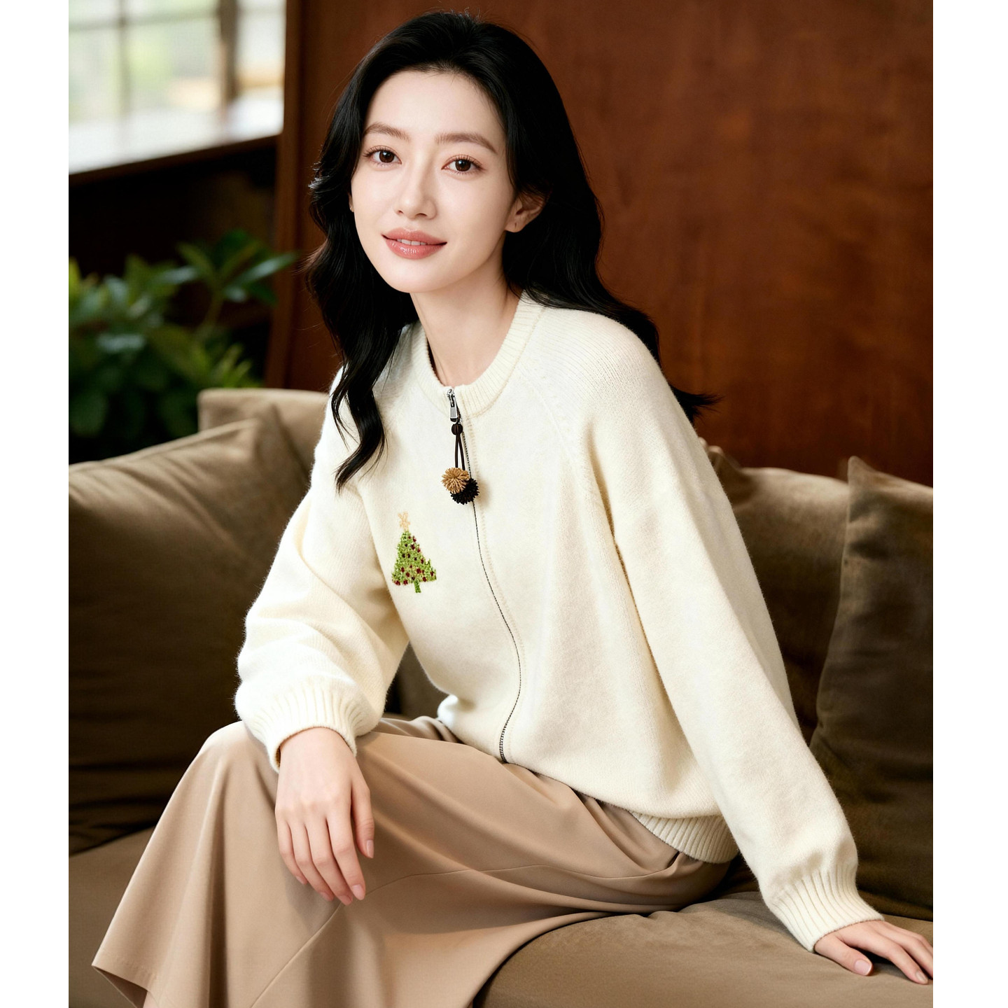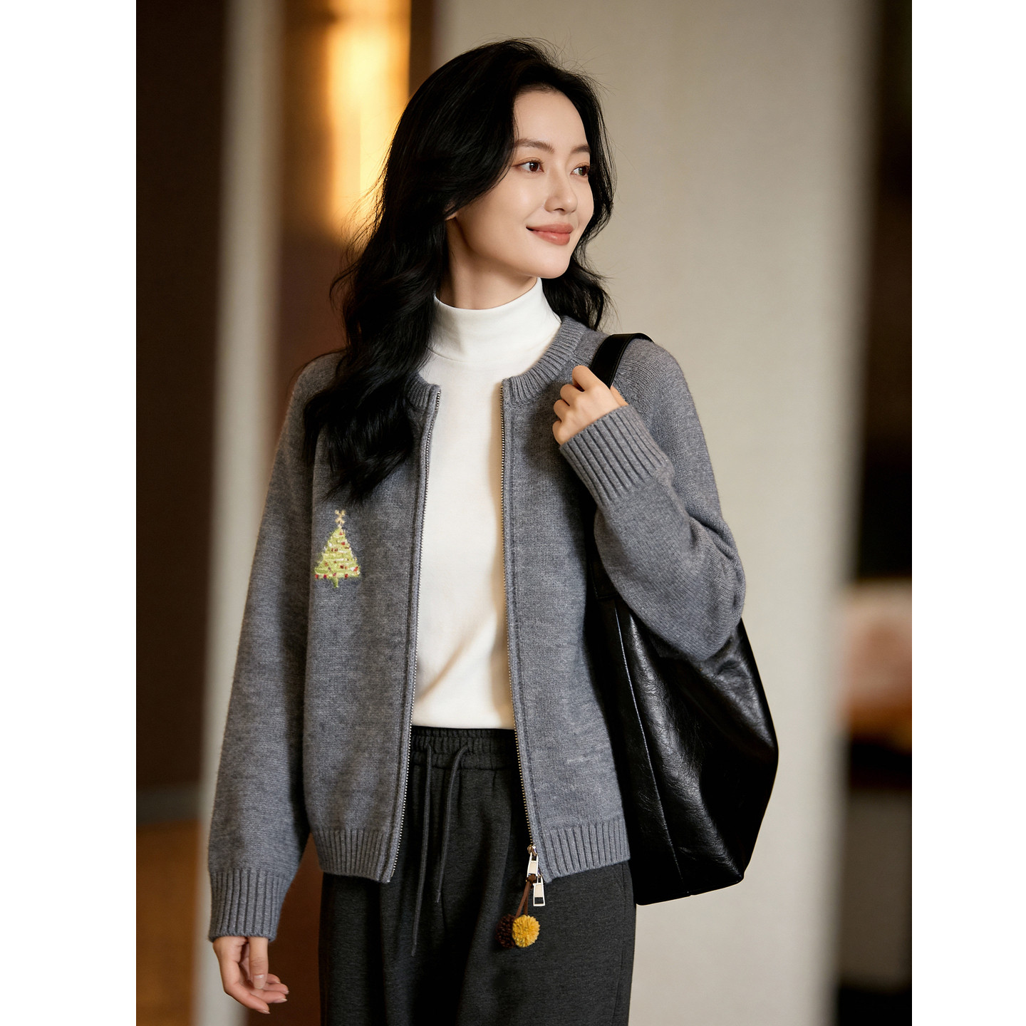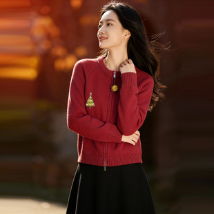 KMV真维斯红色圣诞针织毛衣女2025冬新款 小个子本命马年加厚内搭