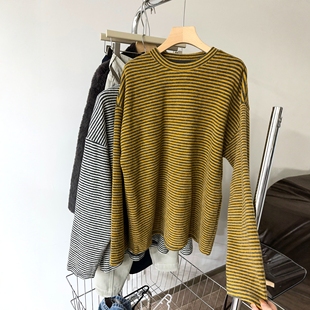 时尚 撞色条纹羊绒针织衫 欧货女装 新款 打底毛衣潮 女欧洲站2025冬装