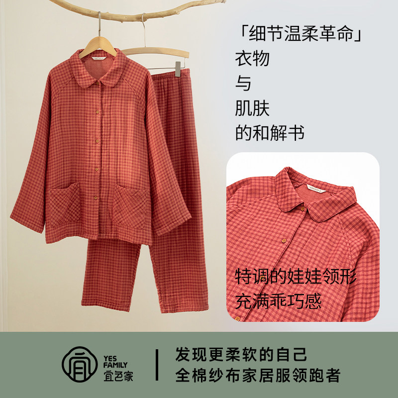春秋季 全棉家居服可外穿套装 长袖 高级感秋款 纯棉大码 浪莎睡衣女款